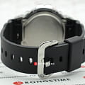 Наручные часы выполнены в облике моделей 80-х годов. 3 окошка Triple Graph разного размера расположились в верхней части циферблата, в нижней – цифровой дисплей. Противоударный корпусУдаропрочный корпусМеханизм заключён в корпус, выполненный из современных материалов, устойчивых к ударам, механическим повреждениям и падению с высоты: инновационный пластик, карбон, нержавеющая сталь, титан. сделан из сочетания пластика и карбоновых волокон, он защищён стальной накладкой, отполированной до зеркального блеска. Комфортный ремешок изготовлен из тёмного полимера. Японский кварцевый механизм. Эксплуатационный срок батарейки – 2 года. Минеральное стекло. Электролюминесцентная подсветкаЭлектролюминесцентная подсветкаЭлектролюминесцентная панель устанавливается под ЖК-экраном часов, при нажатии кнопки электричество преобразуется в свет за счёт подачи напряжения на атомы фосфора, такой тип подсветки позволяет освещать весь циферблат. сине-зелёного оттенка. Водостойкость 200 метров. Световая индикация сигнала. Секундомер, многофункциональный будильник, таймер, хронографХронографФункция позволяет измерять отрезки времени с особой точностью: часы, минуты, секунды. Верным признаком хронографа является наличие на циферблате 3 дополнительных окошек-счётчиков., автокалендарь. Габариты: 49,7 x 53,9 x 18,6 мм.
