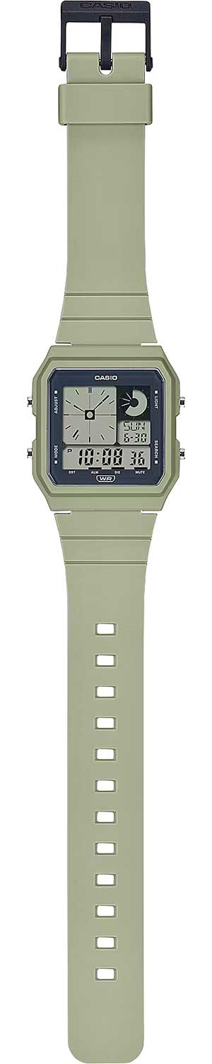 Японские унисекс часы с секундомеромСекундомерСекундоме́р — прибор, способный измерять интервалы времени с точностью до долей секунды. Casio Collection LF-20W-3A, кварцевый механизм с высокой точностью. Светодиодная подсветкаСветодиодная подсветкаСветодиодная или LED-подсветка обеспечивает появление яркого холодного свечения за счёт LED-элементов - маленьких лампочек. Они потребляют минимальное количество энергии, чаще всего можно встретить 1 светодиод, в нижней части циферблата.. Мировое времяМировое время Полезное часовое усложнение, отображающее время в основных городах и известных областях по всему миру, оно связано с часовыми поясами, удобно для путешественников и бизнесменов. : 31 часовая зона (48 городов). Одновременное отображение времени в 4 городах. ТаймерТаймерОтсчитывает секунды в обратном направлении в заданном интервале времени.. 5 ежедневных будильниковБудильникБуди́льник — часы, в заданный момент времени подающие звуковой, световой и/или в редких случаях другой сигнал.. Ежечасный сигнал. Автоматический календарь. Функция включения/выключения звука кнопок. Корпус выполнен из пластика. Класс водозащиты: 30 метров, позволит защитить корпус от случайных брызг или капель дождя. Ремешок из полимерного материала на стандартной застежке.