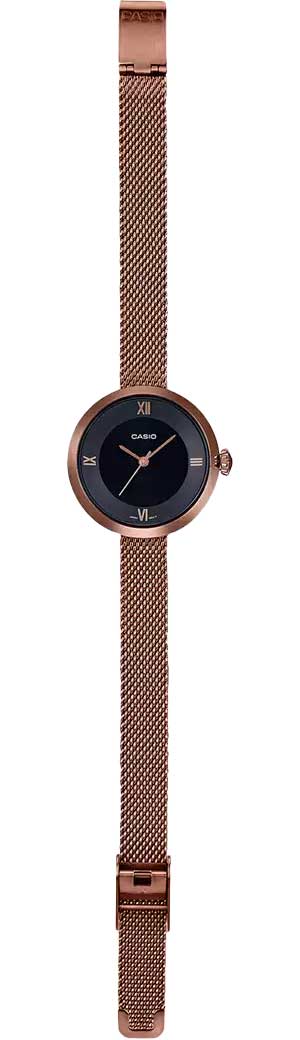 Японские женские часы LTP-E154MR-1A с минеральным стекломМинеральное стеклоМинеральное стекло представляет собой искусственно выращенный минерал кварца. Такое стекло отличается особой устойчивостью к повреждениям и царапинам. Уступает по некоторым качествам сапфировому стеклу. из коллекции LTP являются представителем линейки минималистичных и лаконичных моделей, подходящих для дополнения делового, повседневного образа, наряда для торжественных случаев.