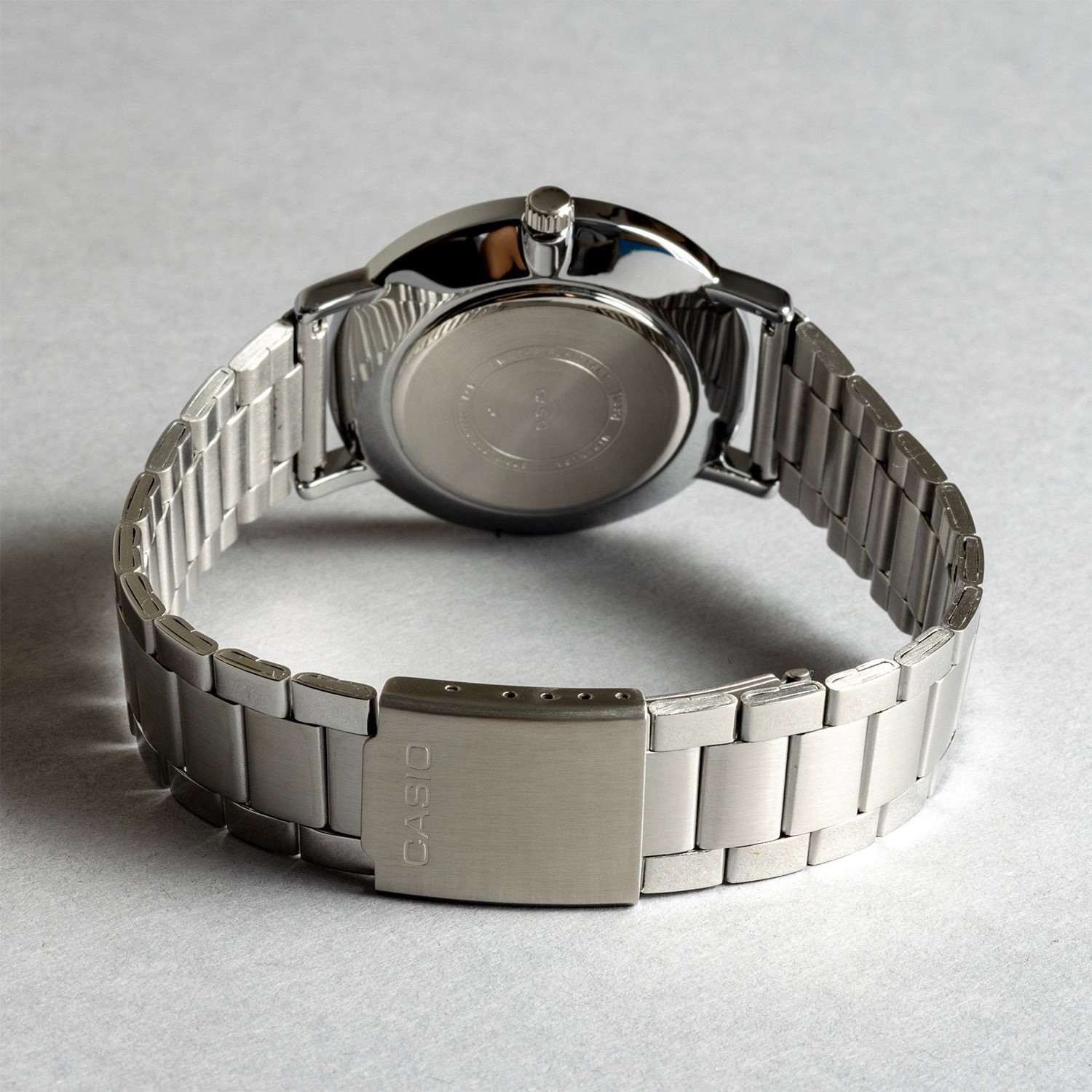 Мужские кварцевые часы Casio — это стильный аксессуар для повседневного образа. Корпус размером 46 мм и толщиной 8,2 мм выполнен из нержавеющей стали 316L. Циферблат серебристого цвета оформлен индексами и стрелками. Циферблат защищён минеральным стекломМинеральное стеклоМинеральное стекло представляет собой искусственно выращенный минерал кварца. Такое стекло отличается особой устойчивостью к повреждениям и царапинам. Уступает по некоторым качествам сапфировому стеклу.. Механизм — кварцевый, питание от батарейки SR626SW с расчётным сроком службы 3 года. Часы оснащены стальным браслетом с раскладной застёжкойРаскладная застёжкаТакой тип застёжки используется только на браслетах из металла. Она никогда не раскрывается полностью, происходит разделение на 2 и более частей. Раскладывающая застёжка снизит вероятность потери часов к минимуму.. Водонепроницаемость 30 м позволяет использовать часы в повседневных условиях. Гарантия — 12 месяцев. Идеальный выбор для тех, кто ценит надёжность, простоту и японское качество.