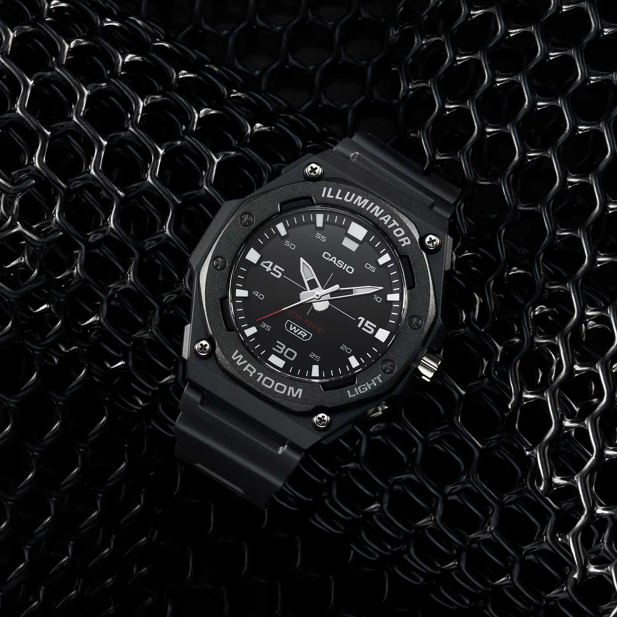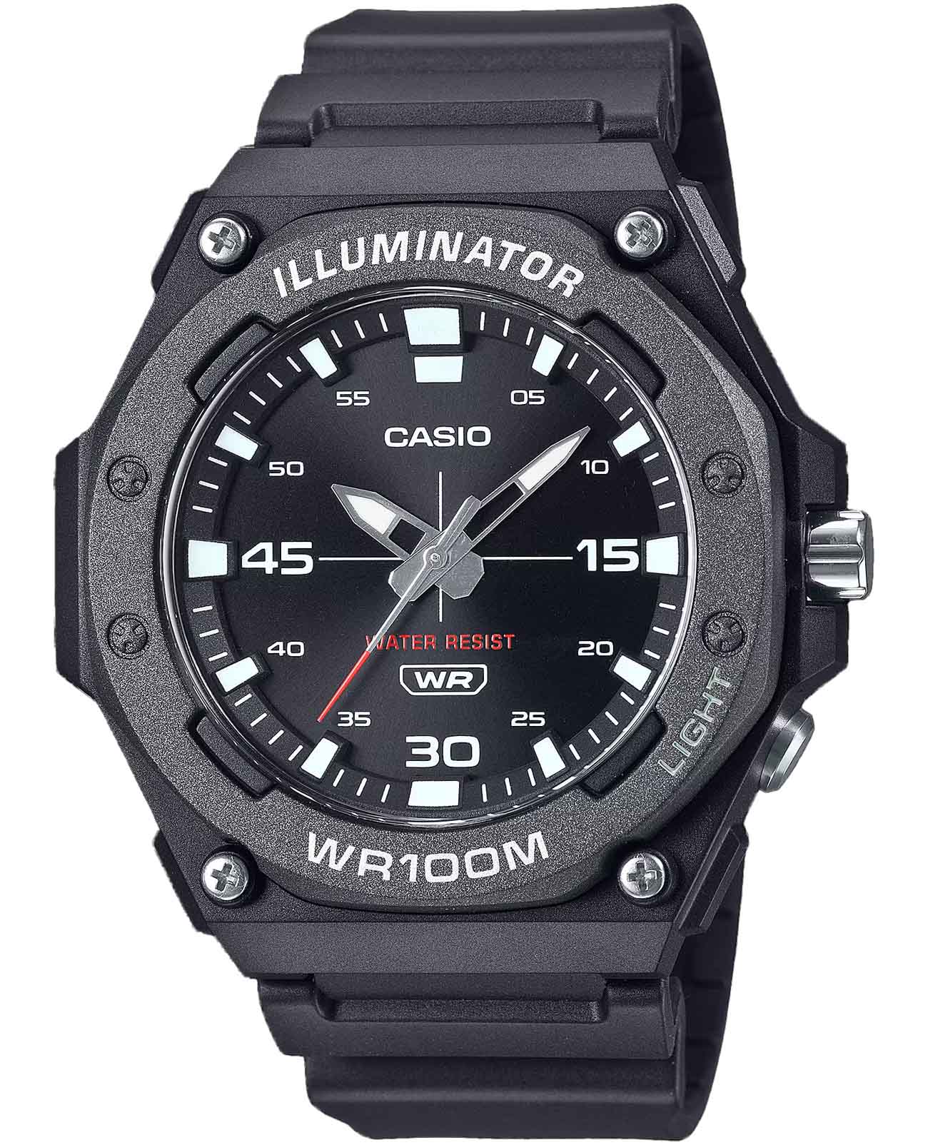 Мужские часы с круглым корпусом MW-620H-1AV. Циферблат с метками в виде штрихов выполнен по технологии Sunray (солнечные лучи). Циферблат с люминесцентным покрытиемЛюминесцентное покрытиеПозволяет считывать показания времени в темноте. Производители наносят на стрелки, часовые индексы, безель или поверхность циферблата светонакопительный состав, дающий холодное свечение. стрелок и меток. Заводная головка с защитой. Водозащита: 100 метров, позволит плавать, нырять и заниматься другими водными видами спорта.