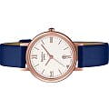 Синий ремешок из натуральной кожи стильно смотрится на запястье, брендовый аксессуар идеально сочетается как с повседневными джинсами, так и с вечерним платьем. Кварцевый механизм обеспечивает безупречную точность хода. Прочный корпус с IP-покрытиемIP-покрытиеМетод ионного напыления. Демонстрирует повышенную устойчивость к истиранию, окислению и химическим веществам. Под воздействием высокого давления и температуры около 1500°C молекулы металла надёжно соединяются с частицами корпуса часов. розового золота. Минеральное стекло. Апертура даты. Габариты:34.5×28×6.4mm.