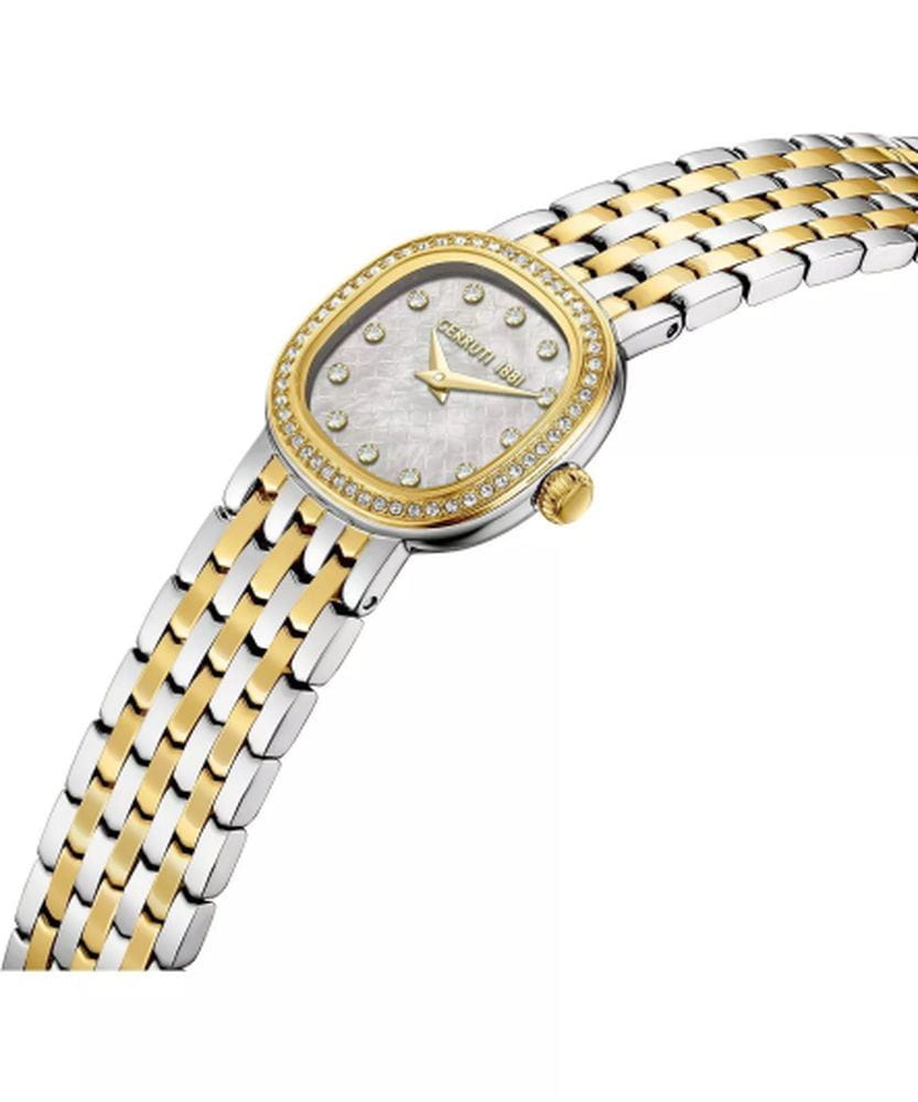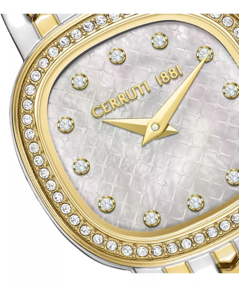 Cerruti 1881 CIWLG0072911 — утончённые женские часы, воплощающие роскошь и классическую итальянскую элегантность. Корпус в изящной круглой форме с мягко скруглёнными линиями, а безельБезельВнешний ободок, закрепляющий стекло. В спортивных часах так называется поворотное кольцо с делениями на циферблате, выполняет роль таймера – замеряет отрезки времени на шкале. Неподвижный безель – элемент декора. Однонаправленно вращающийся безель на дайверских часах позволяет фиксировать моменты погружения и выныривания на поверхность. золотым IP-покрытиемIP-покрытиеМетод ионного напыления. Демонстрирует повышенную устойчивость к истиранию, окислению и химическим веществам. Под воздействием высокого давления и температуры около 1500°C молекулы металла надёжно соединяются с частицами корпуса часов., украшенный сияющими кристаллами, придаёт модели особый блеск и изысканность. Глубокий циферблат с перламутровым переливом и индексами в виде кристаллов создаёт эффект ювелирного украшения. Прочное минеральное стеклоМинеральное стеклоМинеральное стекло представляет собой искусственно выращенный минерал кварца. Такое стекло отличается особой устойчивостью к повреждениям и царапинам. Уступает по некоторым качествам сапфировому стеклу. надёжно защищает поверхность от повреждений, а браслет из нержавеющей стали с частичным IP-покрытиемIP-покрытиеМетод ионного напыления. Демонстрирует повышенную устойчивость к истиранию, окислению и химическим веществам. Под воздействием высокого давления и температуры около 1500°C молекулы металла надёжно соединяются с частицами корпуса часов. оснащён застёжкой «бабочка»Застёжка "бабочка"Такой вид застёжки дополняется предохранителями, помогающими избежать случайного раскрытия браслета. Обладают изящным исполнением. , обеспечивающей элегантное прилегание и комфорт при ношении. Cerruti 1881 — это воплощение женственности, блеска и утончённого вкуса, идеально подходящее для особых случаев и повседневной элегантности.