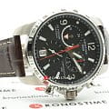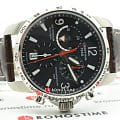 Брендовый хронографХронографФункция позволяет измерять отрезки времени с особой точностью: часы, минуты, секунды. Верным признаком хронографа является наличие на циферблате 3 дополнительных окошек-счётчиков. наделён функциями: секундомер, тахиметрТахиметрРазмеченная шкала, располагается на ободке или безеле часов. Тахиметр позволяет рассчитать скорость на определённом участке пути, расстояние измеряется в километрах или милях., календарь, GMTGMTОтображение времени второго часового пояса.Такая функция особенно актуальна для путешественников и бизнесменов,которые общаются с людьми из разных стран,теперь вы всегда будете знать,какой час у вашего партнёра или близкого человека.. Ремешок из натуральной кожи актуален во все времена. Чёрный циферблат защищён сапфировым стеклом. Швейцарский кварцевый механизм ETA G10.961 отличается высокой точностью хода.