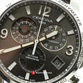 Аксессуар станет универсальным вариантом для делового или повседневного образа. Стильный хронографХронографФункция позволяет измерять отрезки времени с особой точностью: часы, минуты, секунды. Верным признаком хронографа является наличие на циферблате 3 дополнительных окошек-счётчиков. функционирует благодаря швейцарскому кварцевому механизму ETA G10.962 Precidrive™Precidrive™Инновационный кварцевый механизм Certina. Часы, оснащённые этим швейцарским калибром, приравниваются к точности к сертифицированным хронометрам, точность хода составляет +/-10 секунд в год.. Его абсолютная точность хода отмечена официальным сертификатом хронометра COSCСертификат COSCОфициальный сертификат, подтверждающий то, что часы ходят с особо высокой точностью. Для получения документа часы подвергаются тестовым испытаниям, разработанным швейцарским институтом тестирования хронометров COSC. Допустимая норма для механических часов -4/+6 секунд в день, для кварцевых моделей +/- 0,07 секунд в день.. Классический ремешок из натуральной кожи имеет поверхность с тиснением под кожу крокодила. Соблюдение DS ConceptDS ConceptDouble Security Concept, обозначает двойную надёжность и безупречную точность часов Certina. Двойная система защиты подразумевает обеспечение максимальной устойчивости к ударам и высоких показателей водонепроницаемости.. Сапфировое стекло с односторонним антибликовым покрытием. БезельБезельВнешний ободок, закрепляющий стекло. В спортивных часах так называется поворотное кольцо с делениями на циферблате, выполняет роль таймера – замеряет отрезки времени на шкале. Неподвижный безель – элемент декора. Однонаправленно вращающийся безель на дайверских часах позволяет фиксировать моменты погружения и выныривания на поверхность. со шкалой тахиметраТахиметрРазмеченная шкала, располагается на ободке или безеле часов. Тахиметр позволяет рассчитать скорость на определённом участке пути, расстояние измеряется в километрах или милях.. Водостойкость 100 метров. Люминесцентная подсветкаЛюминесцентное покрытиеПозволяет считывать показания времени в темноте. Производители наносят на стрелки, часовые индексы, безель или поверхность циферблата светонакопительный состав, дающий холодное свечение.. Защищённая заводная головка. Секундомер, GMTGMTОтображение времени второго часового пояса.Такая функция особенно актуальна для путешественников и бизнесменов,которые общаются с людьми из разных стран,теперь вы всегда будете знать,какой час у вашего партнёра или близкого человека., отображение числа, индикатор EOLEOLПредставляет собой систему, уведомляющую владельца часов о необходимости замены элемента питания. За 2 недели до полного разряда батарейки секундная стрелка перестаёт ходить чётко и начинает перепрыгивать на 3-4 деления.. Диаметр корпуса: 42 мм.
