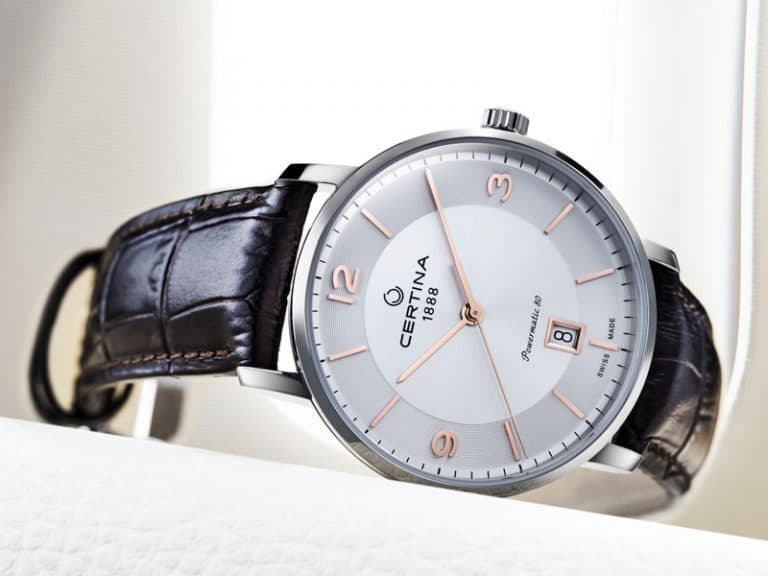 Высокую точность хода обеспечивает швейцарский автоматический механизм Powermatic 80Powermatic 80Эксклюзивный калибр от швейцарской компании ETA с увеличенным запасом хода до 80 часов за счёт удлинённой заводной пружины. Характеризуется улучшенной системой спуска со сниженным трением. с запасом хода до 80 часов. Концепция Двойной Надёжности DSDS ConceptDouble Security Concept, обозначает двойную надёжность и безупречную точность часов Certina. Двойная система защиты подразумевает обеспечение максимальной устойчивости к ударам и высоких показателей водонепроницаемости.. Сапфировое стекло. Ремешок из натуральной кожи. Календарь.