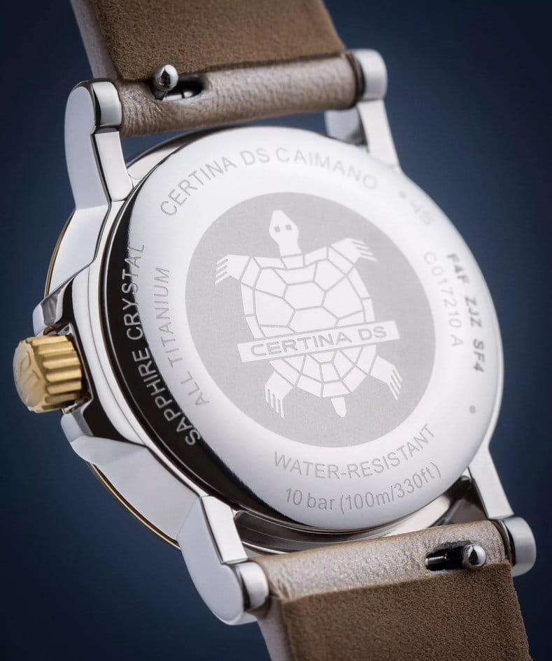 Женские швейцарские часы с сапфировым стеклом Certina DS Caimano Ladies Titanium C017.210.56.117.00, кварцевый механизм с высокой точностью. Сапфировое стеклоСапфировое стеклоПрочный и надёжный материал из кристалла сапфира синтетического происхождения, характеризующийся особой твёрдостью и устойчивостью к царапинам и повреждениям. устойчивое к появлению царапин, обладающее высокой прозрачностью. Класс водозащиты: 100 метров, позволит плавать, нырять и заниматься другими водными видами спорта. Корпус часов изготовлен из титана. БезельБезельВнешний ободок, закрепляющий стекло. В спортивных часах так называется поворотное кольцо с делениями на циферблате, выполняет роль таймера – замеряет отрезки времени на шкале. Неподвижный безель – элемент декора. Однонаправленно вращающийся безель на дайверских часах позволяет фиксировать моменты погружения и выныривания на поверхность. с PVD-покрытиемPVDУльтратонкое покрытие наносится в технике вакуумного напыления, сочетает в себе нитрид титана особой прочности со слоем золота или оксида хрома. Несёт в себе декоративную или защитную функцию..