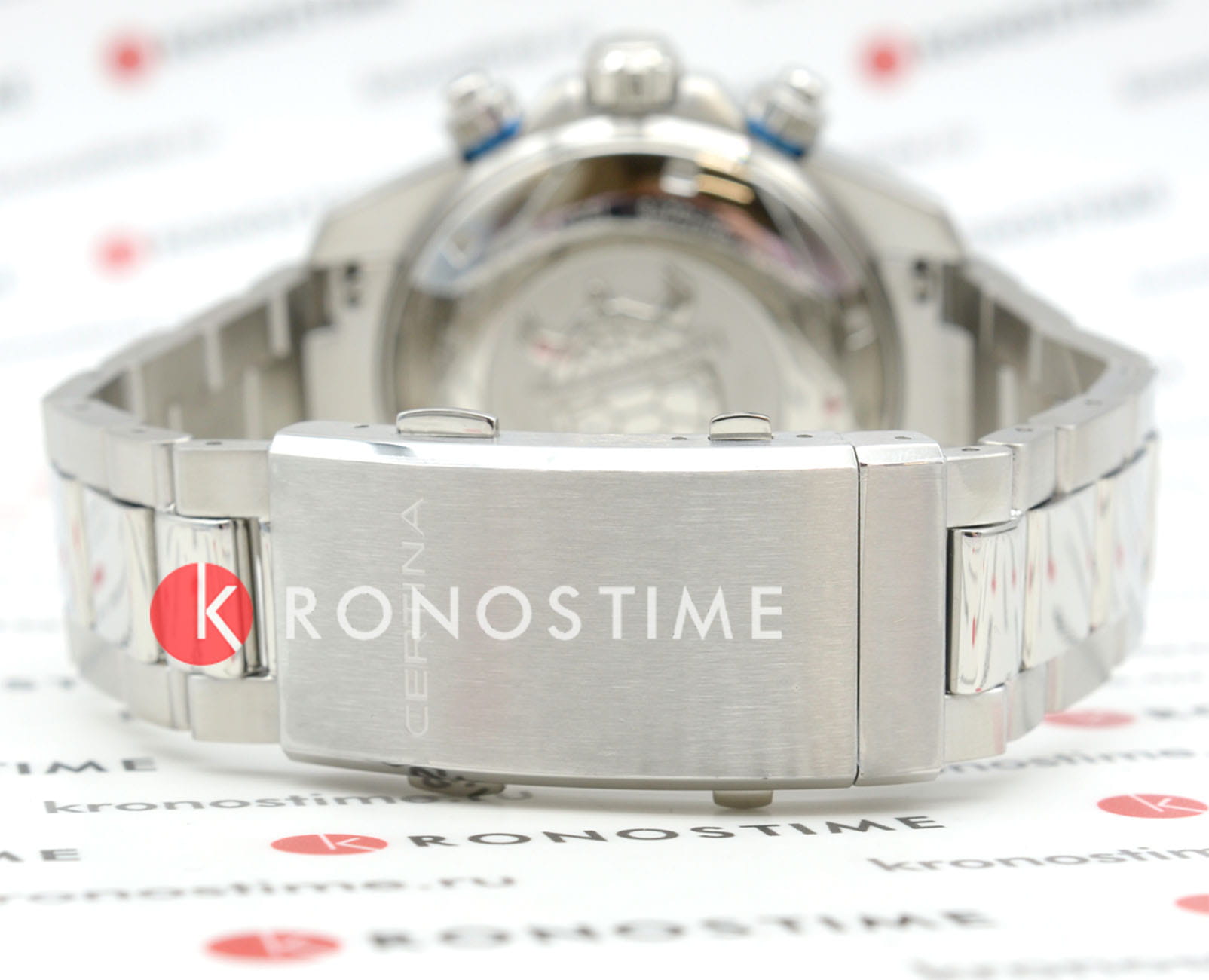Коллекция DS Action открывает новые «глубины» часового искусства в прямом смысле этого слова: эти «морские» часы в стиле унисекс отличаются точностью, исключительной водостойкостью и динамичным дизайном – идеальный выбор для любой ситуации. Швейцарские мужские механические часы Certina DS Action Diver Chrono C032.827.11.041.00 из коллекции DS Action – безупречно точный и впечатляюще надёжный аксессуар. Габаритный хронографХронографФункция позволяет измерять отрезки времени с особой точностью: часы, минуты, секунды. Верным признаком хронографа является наличие на циферблате 3 дополнительных окошек-счётчиков. с синим циферблатом выгодно подчеркнёт повседневный или деловой образ. Модель соответствует стандарту ISO 6425 для дайверских часов и может похвастаться повышенной водостойкостью до 30 бар. Заводная головка, кнопки и задняя крышка завинчиваются для дополнительной герметичности. Аксессуар позволит вам чувствовать себя на высоте и в воде, и на суше. Сапфировое стеклоСапфировое стеклоПрочный и надёжный материал из кристалла сапфира синтетического происхождения, характеризующийся особой твёрдостью и устойчивостью к царапинам и повреждениям. с двухсторонней антибликовой обработкой. Керамический вращающийся безельБезельВнешний ободок, закрепляющий стекло. В спортивных часах так называется поворотное кольцо с делениями на циферблате, выполняет роль таймера – замеряет отрезки времени на шкале. Неподвижный безель – элемент декора. Однонаправленно вращающийся безель на дайверских часах позволяет фиксировать моменты погружения и выныривания на поверхность.. Корпус из нержавеющей стали 316L. Люминесцентная подсветкаЛюминесцентное покрытиеПозволяет считывать показания времени в темноте. Производители наносят на стрелки, часовые индексы, безель или поверхность циферблата светонакопительный состав, дающий холодное свечение.. Календарь, секундомер. Стальной браслет на раскладной застёжкеРаскладная застёжкаТакой тип застёжки используется только на браслетах из металла. Она никогда не раскрывается полностью, происходит разделение на 2 и более частей. Раскладывающая застёжка снизит вероятность потери часов к минимуму.. Диаметр корпуса: 44,6 мм. Производство и сборка: Швейцария.