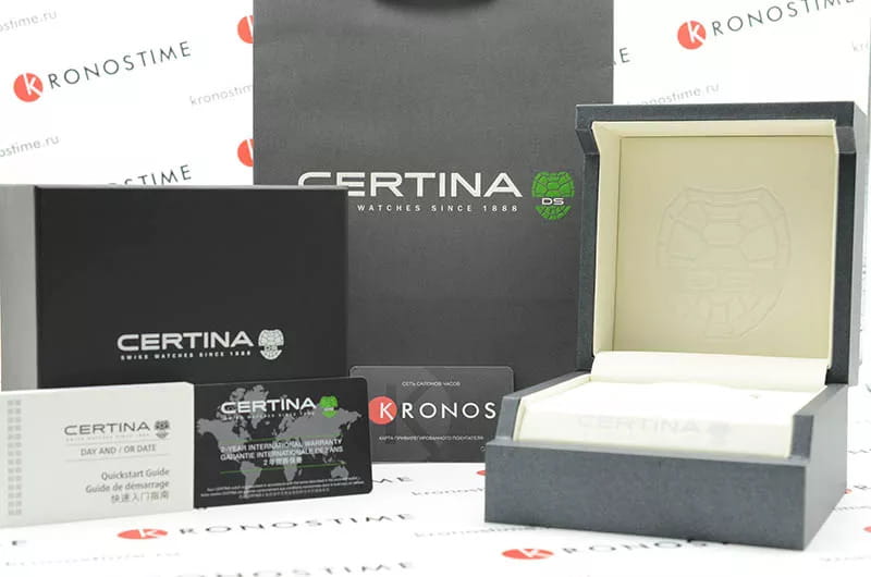 Наручные часы в спортивном стиле привлекают внимание синими деталями, что символизирует скоростное напряжение на гоночной трассе. Отличным дополнением стал кожаный ремешок с перфорацией из натурального материала. Кварцевый швейцарский механизм ETA G10.212 Precidrive™Precidrive™Инновационный кварцевый механизм Certina. Часы, оснащённые этим швейцарским калибром, приравниваются к точности к сертифицированным хронометрам, точность хода составляет +/-10 секунд в год. с повышенной точностью хода, подтверждённой сертификатом COSCСертификат COSCОфициальный сертификат, подтверждающий то, что часы ходят с особо высокой точностью. Для получения документа часы подвергаются тестовым испытаниям, разработанным швейцарским институтом тестирования хронометров COSC. Допустимая норма для механических часов -4/+6 секунд в день, для кварцевых моделей +/- 0,07 секунд в день.. Система DS ConceptDS ConceptDouble Security Concept, обозначает двойную надёжность и безупречную точность часов Certina. Двойная система защиты подразумевает обеспечение максимальной устойчивости к ударам и высоких показателей водонепроницаемости.. Двухстороннее антибликовое покрытие для стекла из сапфира. Стрелки и индексы с составом SuperLumiNovaЛюминесцентное покрытиеПозволяет считывать показания времени в темноте. Производители наносят на стрелки, часовые индексы, безель или поверхность циферблата светонакопительный состав, дающий холодное свечение.. Заводная головка с защитой. ХронографХронографФункция позволяет измерять отрезки времени с особой точностью: часы, минуты, секунды. Верным признаком хронографа является наличие на циферблате 3 дополнительных окошек-счётчиков., шкала тахиметраТахиметрРазмеченная шкала, располагается на ободке или безеле часов. Тахиметр позволяет рассчитать скорость на определённом участке пути, расстояние измеряется в километрах или милях., календарь, секундомер, индикатор EOLEOLПредставляет собой систему, уведомляющую владельца часов о необходимости замены элемента питания. За 2 недели до полного разряда батарейки секундная стрелка перестаёт ходить чётко и начинает перепрыгивать на 3-4 деления., Lap-функция измерения промежуточного времени (круга). Диаметр корпуса: 42 мм.