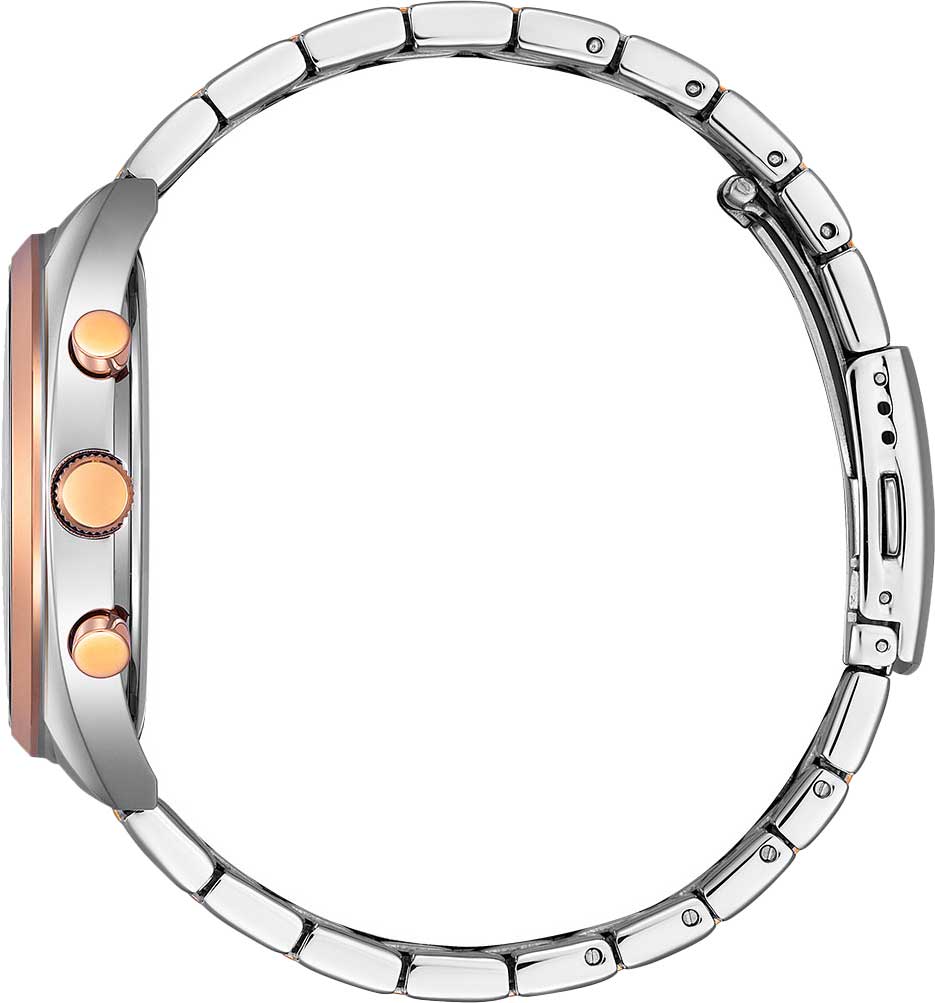 Citizen Chronograph AN8216-50L часы-хронографХронографФункция позволяет измерять отрезки времени с особой точностью: часы, минуты, секунды. Верным признаком хронографа является наличие на циферблате 3 дополнительных окошек-счётчиков. с секундомеромСекундомерСекундоме́р — прибор, способный измерять интервалы времени с точностью до долей секунды.. Корпус из нержавеющей стали диаметром 42 мм идеально сбалансирован. Минеральное стеклоМинеральное стеклоМинеральное стекло представляет собой искусственно выращенный минерал кварца. Такое стекло отличается особой устойчивостью к повреждениям и царапинам. Уступает по некоторым качествам сапфировому стеклу. обеспечивает отличную защиту циферблата от царапин. Часы работают на основе кварцевого механизма. Стальной браслет на раскладной застёжкеРаскладная застёжкаТакой тип застёжки используется только на браслетах из металла. Она никогда не раскрывается полностью, происходит разделение на 2 и более частей. Раскладывающая застёжка снизит вероятность потери часов к минимуму. идеально дополняют дизайн часов, обеспечивая комфортное ношение. БезельБезельВнешний ободок, закрепляющий стекло. В спортивных часах так называется поворотное кольцо с делениями на циферблате, выполняет роль таймера – замеряет отрезки времени на шкале. Неподвижный безель – элемент декора. Однонаправленно вращающийся безель на дайверских часах позволяет фиксировать моменты погружения и выныривания на поверхность. с IP-покрытиемIP-покрытиеМетод ионного напыления. Демонстрирует повышенную устойчивость к истиранию, окислению и химическим веществам. Под воздействием высокого давления и температуры около 1500°C молекулы металла надёжно соединяются с частицами корпуса часов.. Секундомер с точностью показаний 1c и временем измерения 60мин. Окошко даты находится между часовыми отметками 4 и 5. 12-ти и 24-х часовой формат времени отображается на отдельном циферблате. Циферблат с метками в виде штрихов выполнен по технологии Sunray (солнечные лучи). Заводная головка с защитой. Часы обладают водонепроницаемостью до 50WR, что делает их идеальными для повседневной носки.