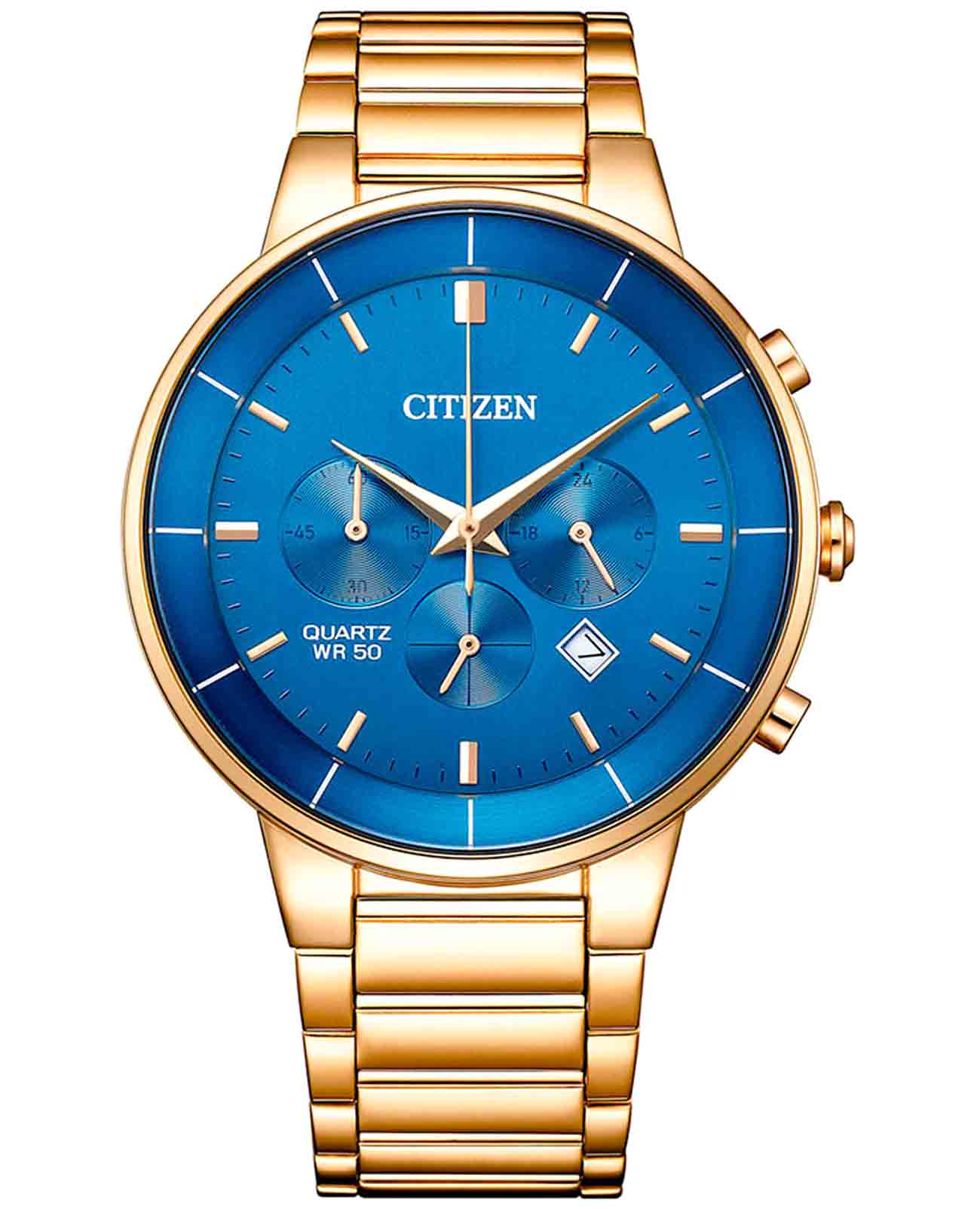 Citizen Chronograph AN8223-54L часы-хронографХронографФункция позволяет измерять отрезки времени с особой точностью: часы, минуты, секунды. Верным признаком хронографа является наличие на циферблате 3 дополнительных окошек-счётчиков. с секундомеромСекундомерСекундоме́р — прибор, способный измерять интервалы времени с точностью до долей секунды.. Корпус из нержавеющей стали с IP-покрытиемIP-покрытиеМетод ионного напыления. Демонстрирует повышенную устойчивость к истиранию, окислению и химическим веществам. Под воздействием высокого давления и температуры около 1500°C молекулы металла надёжно соединяются с частицами корпуса часов. диаметром 42 мм идеально сбалансирован. Минеральное стеклоМинеральное стеклоМинеральное стекло представляет собой искусственно выращенный минерал кварца. Такое стекло отличается особой устойчивостью к повреждениям и царапинам. Уступает по некоторым качествам сапфировому стеклу. обеспечивает отличную защиту циферблата от царапин. Часы работают на основе кварцевого механизма. Стальной браслет на раскладной застёжкеРаскладная застёжкаТакой тип застёжки используется только на браслетах из металла. Она никогда не раскрывается полностью, происходит разделение на 2 и более частей. Раскладывающая застёжка снизит вероятность потери часов к минимуму. идеально дополняют дизайн часов, обеспечивая комфортное ношение. Секундомер с точностью показаний 1c и временем измерения 60мин. Окошко даты находится между часовыми отметками 4 и 5. 12-ти и 24-х часовой формат времени отображается на отдельном циферблате. Циферблат с метками в виде штрихов выполнен по технологии Sunray (солнечные лучи). Заводная головка с защитой. Часы обладают водонепроницаемостью до 50WR, что делает их идеальными для повседневной носки.