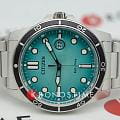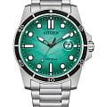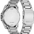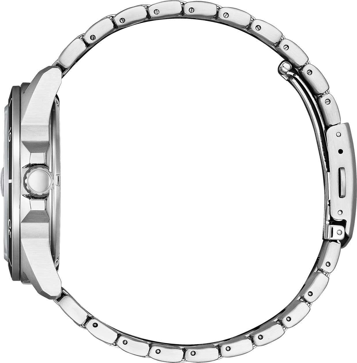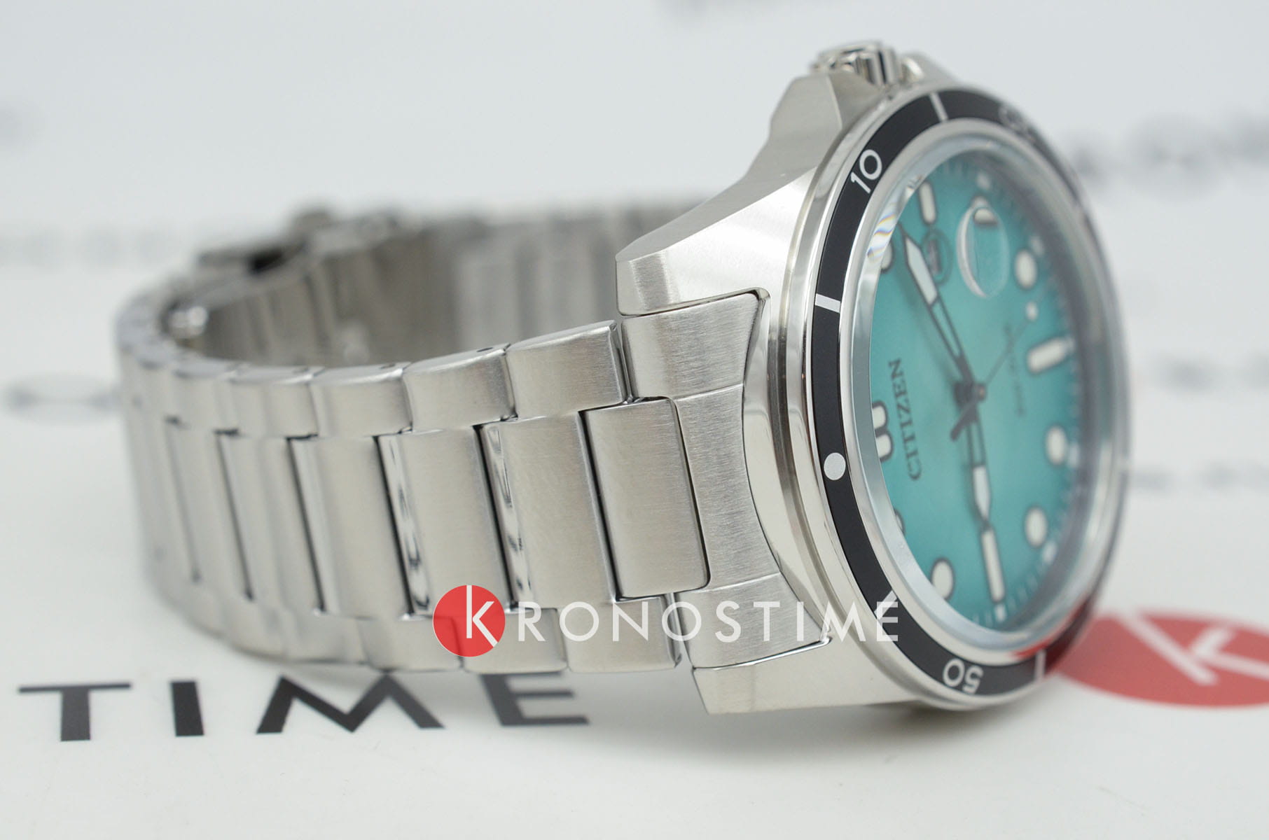 Citizen AW1816-89L — это стильные и практичные часы японского производства, которые станут отличным повседневным аксессуаром для активных мужчин. Модель оснащена современным кварцевым механизмом Citizen J810 и инновационной системой Eco-Drive, работающей на солнечной энергии, благодаря чему часы не требуют замены батарейки, а запас хода достигает 240 дней. Корпус диаметром 41,5 мм и толщиной 11,8 мм выполнен из прочной нержавеющей стали, а на безельБезельВнешний ободок, закрепляющий стекло. В спортивных часах так называется поворотное кольцо с делениями на циферблате, выполняет роль таймера – замеряет отрезки времени на шкале. Неподвижный безель – элемент декора. Однонаправленно вращающийся безель на дайверских часах позволяет фиксировать моменты погружения и выныривания на поверхность. нанесено черное IP-покрытиеIP-покрытиеМетод ионного напыления. Демонстрирует повышенную устойчивость к истиранию, окислению и химическим веществам. Под воздействием высокого давления и температуры около 1500°C молекулы металла надёжно соединяются с частицами корпуса часов., что обеспечивает надежность и долговечность. Бирюзовый циферблат украшен метками в виде точек и штрихов, а стрелки и метки с люминесцентным покрытиемЛюминесцентное покрытиеПозволяет считывать показания времени в темноте. Производители наносят на стрелки, часовые индексы, безель или поверхность циферблата светонакопительный состав, дающий холодное свечение. гарантируют отличную видимость времени даже в темноте. Окошко даты с увеличительным стеклом расположено в положении 3 часа, а заводная головка с защитой и завинчивающаяся задняя крышка повышают уровень безопасности и герметичности. Часы оснащены функцией индикации заряда EOLEOLПредставляет собой систему, уведомляющую владельца часов о необходимости замены элемента питания. За 2 недели до полного разряда батарейки секундная стрелка перестаёт ходить чётко и начинает перепрыгивать на 3-4 деления. и системой предотвращения перезарядки для дополнительного удобства. Минеральное стеклоМинеральное стеклоМинеральное стекло представляет собой искусственно выращенный минерал кварца. Такое стекло отличается особой устойчивостью к повреждениям и царапинам. Уступает по некоторым качествам сапфировому стеклу. эффективно защищает циферблат от царапин. Водозащита 100WR позволяет носить часы во время плавания и занятий водными видами спорта. Стальной браслет с раскладной застёжкойРаскладная застёжкаТакой тип застёжки используется только на браслетах из металла. Она никогда не раскрывается полностью, происходит разделение на 2 и более частей. Раскладывающая застёжка снизит вероятность потери часов к минимуму. обеспечивает комфорт и надежную фиксацию на руке, а вес модели составляет 138 грамм, что делает часы удобными для ежедневного ношения.