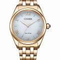 Часы Citizen EM1143-81X созданы для тех, кто ценит изящество и передовые технологии. Модель выполнена в Японии и оснащена кварцевым механизмом Citizen E031 с инновационной системой Eco-Drive, которая обеспечивает питание от солнечной энергии и не требует замены батарейки. Запаса энергии хватает на 180 дней, а функция индикации заряда и система предотвращения перезарядки гарантируют стабильную работу. Корпус диаметром 33 мм и толщиной 8,7 мм изготовлен из высококачественной стали с золотистым IP-покрытиемIP-покрытиеМетод ионного напыления. Демонстрирует повышенную устойчивость к истиранию, окислению и химическим веществам. Под воздействием высокого давления и температуры около 1500°C молекулы металла надёжно соединяются с частицами корпуса часов., а белый циферблат с римскими цифрами и штрихами придает часам утончённый вид. Сапфировое стеклоСапфировое стеклоПрочный и надёжный материал из кристалла сапфира синтетического происхождения, характеризующийся особой твёрдостью и устойчивостью к царапинам и повреждениям. надежно защищает циферблат от царапин и повреждений. Заводная головка украшена камнем в форме кабошона, что добавляет особого шарма аксессуару. Стальной браслет с золотистым IP-покрытиемIP-покрытиеМетод ионного напыления. Демонстрирует повышенную устойчивость к истиранию, окислению и химическим веществам. Под воздействием высокого давления и температуры около 1500°C молекулы металла надёжно соединяются с частицами корпуса часов. с удобной застежкой «бабочка»Застёжка "бабочка"Такой вид застёжки дополняется предохранителями, помогающими избежать случайного раскрытия браслета. Обладают изящным исполнением. обеспечивает комфортную посадку на запястье. Водозащита уровня 50WR позволяет использовать часы в повседневной жизни, не опасаясь попадания влаги. Эта модель станет стильным и надежным дополнением к вашему образу.