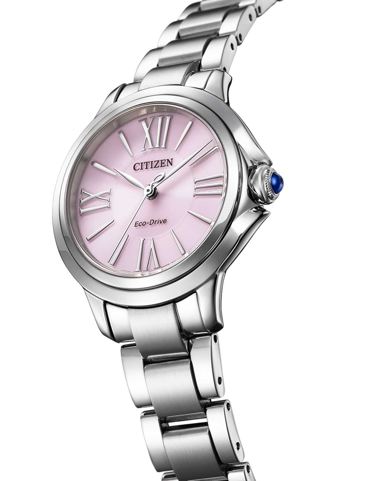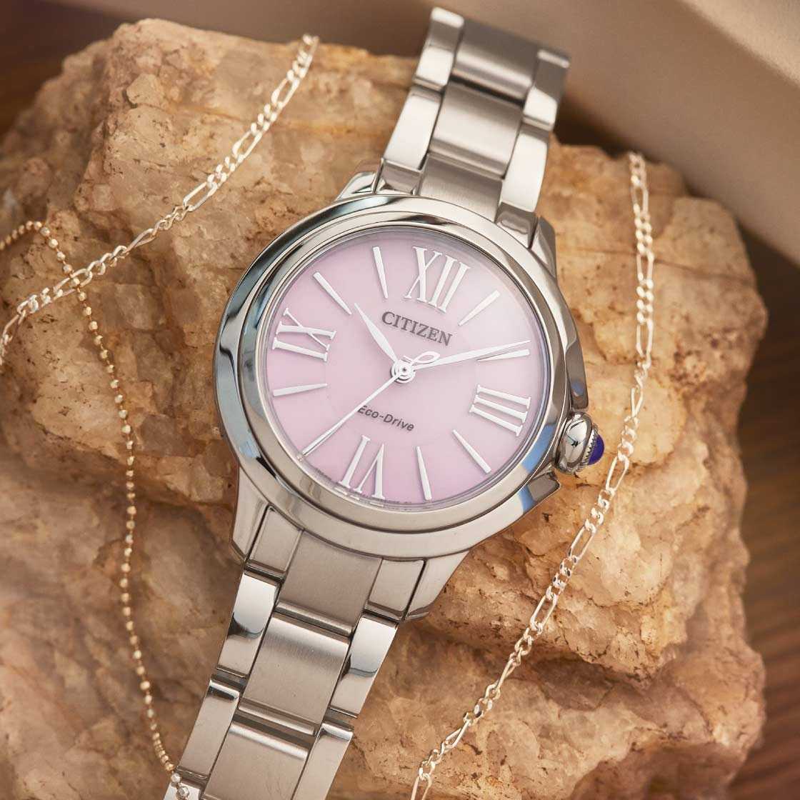 Часы Citizen EM1160-58X — это стильная модель, созданная для современных женщин, которые ценят элегантность и надёжность. Корпус диаметром 31,5 мм и толщиной 8,7 мм выполнен из прочной нержавеющей стали, что обеспечивает долговечность и изысканный внешний вид. Серебристый браслет из нержавеющей стали удобно фиксируется на запястье благодаря застежке «бабочка»Застёжка "бабочка"Такой вид застёжки дополняется предохранителями, помогающими избежать случайного раскрытия браслета. Обладают изящным исполнением. . Розовый циферблат украшен римскими цифрами и аккуратными штрихами, а центральные часовая, минутная и секундная стрелки обеспечивают точное отображение времени. Защиту от случайных царапин гарантирует сапфировое стеклоСапфировое стеклоПрочный и надёжный материал из кристалла сапфира синтетического происхождения, характеризующийся особой твёрдостью и устойчивостью к царапинам и повреждениям., обладающее высокой прочностью. Благодаря инновационному механизму Eco-Drive Caliber E031 часы работают на солнечной энергии и не требуют замены батарейки. Водонепроницаемость уровня WR 50 позволяет не беспокоиться о контакте с водой во время мытья рук или под дождём. Японское качество исполнения и дизайн делают эти часы отличным выбором для повседневного ношения и особых случаев.
