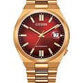Мужские часы Citizen Tsuyosa NJ0153-82X - идеальное сочетание классического и современного дизайна. Корпус из нержавеющей стали с IP-покрытиемIP-покрытиеМетод ионного напыления. Демонстрирует повышенную устойчивость к истиранию, окислению и химическим веществам. Под воздействием высокого давления и температуры около 1500°C молекулы металла надёжно соединяются с частицами корпуса часов. цвета розового золота, диаметром 40 мм идеально сбалансирован. Сапфировое стеклоСапфировое стеклоПрочный и надёжный материал из кристалла сапфира синтетического происхождения, характеризующийся особой твёрдостью и устойчивостью к царапинам и повреждениям. с антибликовым покрытиемАнтибликовое покрытиеСлой оксида металла в 0,13-0,3 микрон, благодаря которому стекло часов не бликует и не отражает свет. Антибликовое покрытие уменьшает отражение света в 10 раз, обеспечивая отличную читаемость показателей циферблата. обеспечивает отличную защиту циферблата от царапин. Механические часы с автоподзаводом. Стальной браслет на раскладной застёжкеРаскладная застёжкаТакой тип застёжки используется только на браслетах из металла. Она никогда не раскрывается полностью, происходит разделение на 2 и более частей. Раскладывающая застёжка снизит вероятность потери часов к минимуму. идеально дополняют дизайн часов, обеспечивая комфортное ношение. Метки в виде штрихов. Окошко даты с увеличительным стеклом находится в положении 3 часа. Стрелки и метки с люминесцентным покрытиемЛюминесцентное покрытиеПозволяет считывать показания времени в темноте. Производители наносят на стрелки, часовые индексы, безель или поверхность циферблата светонакопительный состав, дающий холодное свечение.. В механизме 21 камень, частота 21600 полуколебаний в час. Запас хода 42 часа. Рифленая заводная головка находится в положении 4 часа. Завинчивающаяся прозрачная задняя крышка. Часы обладают водонепроницаемостью до 50WR, что делает их идеальными для повседневной носки.