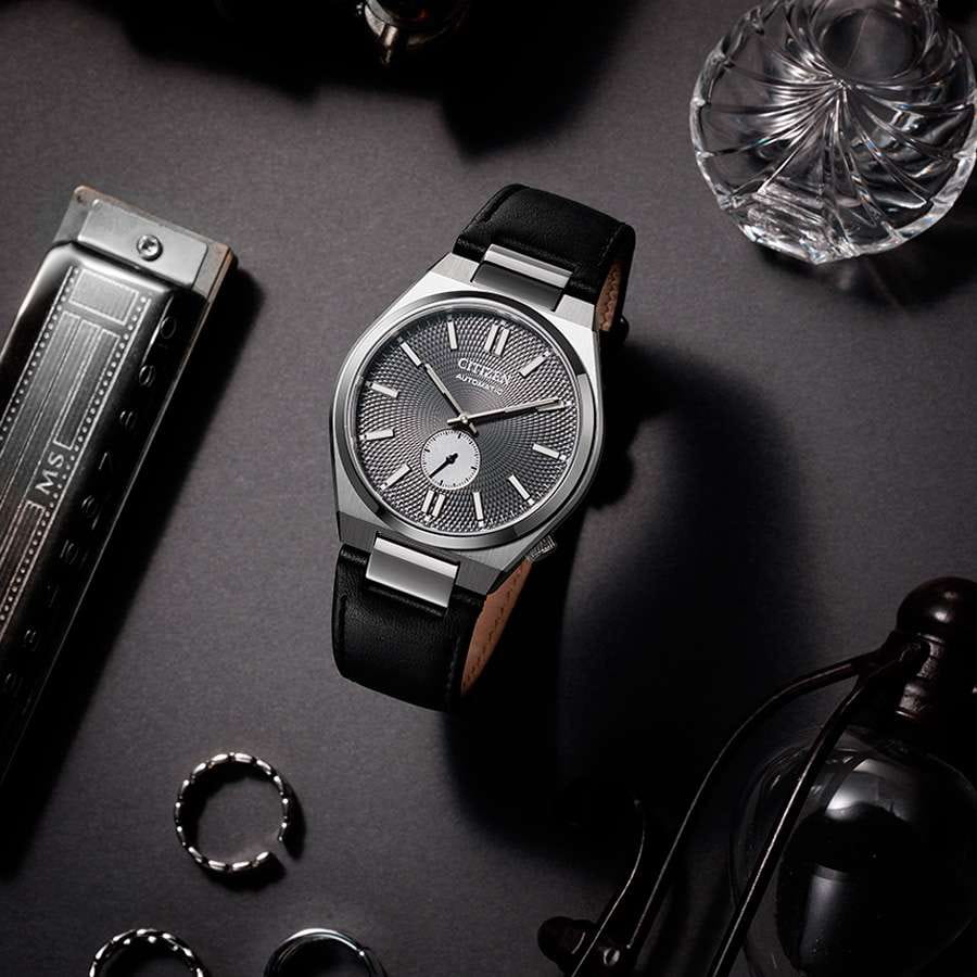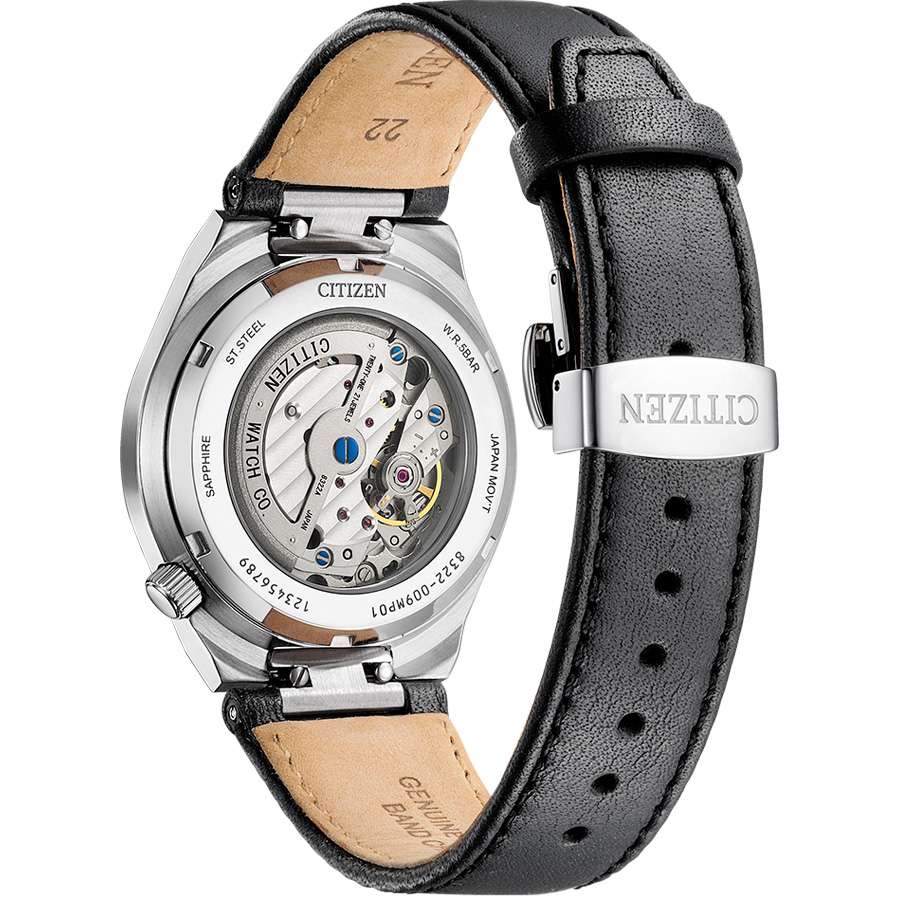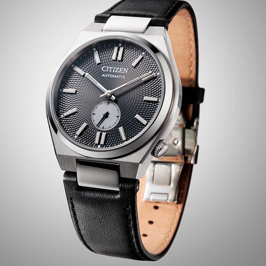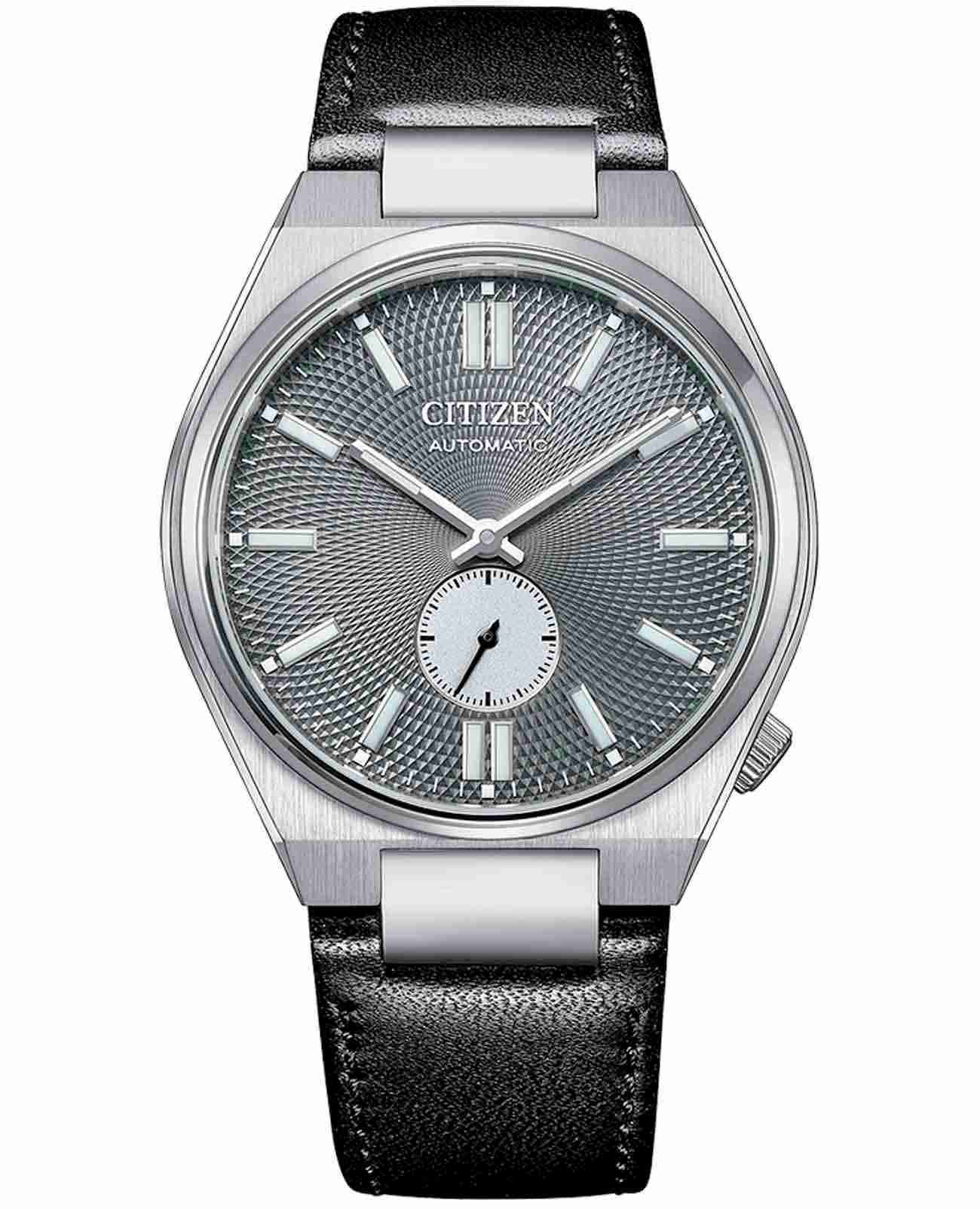 Мужские наручные часы Citizen Automatic NK5010-01H - идеальное сочетание классического и современного дизайна. Корпус из нержавеющей стали диаметром 41 мм идеально сбалансирован. Сапфировое стеклоСапфировое стеклоПрочный и надёжный материал из кристалла сапфира синтетического происхождения, характеризующийся особой твёрдостью и устойчивостью к царапинам и повреждениям. обеспечивает отличную защиту циферблата от царапин. Механические часы с автоподзаводом. Кожаный ремешок с застёжкой «бабочка» с кнопкамиЗастёжка "бабочка"Такой вид застёжки дополняется предохранителями, помогающими избежать случайного раскрытия браслета. Обладают изящным исполнением. идеально дополняют дизайн часов, обеспечивая комфортное ношение. В механизме 21 камень, частота 21600 полуколебаний в час. Стрелки и метки с люминесцентным покрытиемЛюминесцентное покрытиеПозволяет считывать показания времени в темноте. Производители наносят на стрелки, часовые индексы, безель или поверхность циферблата светонакопительный состав, дающий холодное свечение.. Секундная стрелка вынесена на отдельный циферблат. Текстурный циферблат выполнен по технологии Sunray (солнечные лучи). Метки в виде штрихов. Рифленая заводная головка. Циферблат выполнен по технологии Sunray (солнечные лучи). Часы обладают водонепроницаемостью до 50WR, что делает их идеальными для повседневной носки.