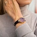 Женские часы Cover Moon CO196.07 - это аксессуар для истинных леди из коллекции Fly Me To The Moon. Часы работают на кварцевом калибре ETA. Циферблат выполнен в коричневом перламутровом исполнении, создавая игру света при каждом движении запястья, и украшен 11 кристаллами Swarovski, которые служат часовым индикатором, добавляя блики света и роскоши. Кроме того, модель имеет окно фаз Луны на «6 часах» и апертуру даты на «3 часах», что делает ее функциональной для ценителей астрономических усложнений. Часы имеют 32-миллиметровый корпус из нержавеющей стали с PVD-покрытиемPVDУльтратонкое покрытие наносится в технике вакуумного напыления, сочетает в себе нитрид титана особой прочности со слоем золота или оксида хрома. Несёт в себе декоративную или защитную функцию. цвета розового золота. Водонепроницаемость часов достигает 5 атмосфер (WR 50), что позволяет использовать их в повседневной жизни, однако не рекомендуется для контакта с водой во время плавания или дайвинга. Маркировка «Swiss Made». Кожаный ремешок на классической застежке.