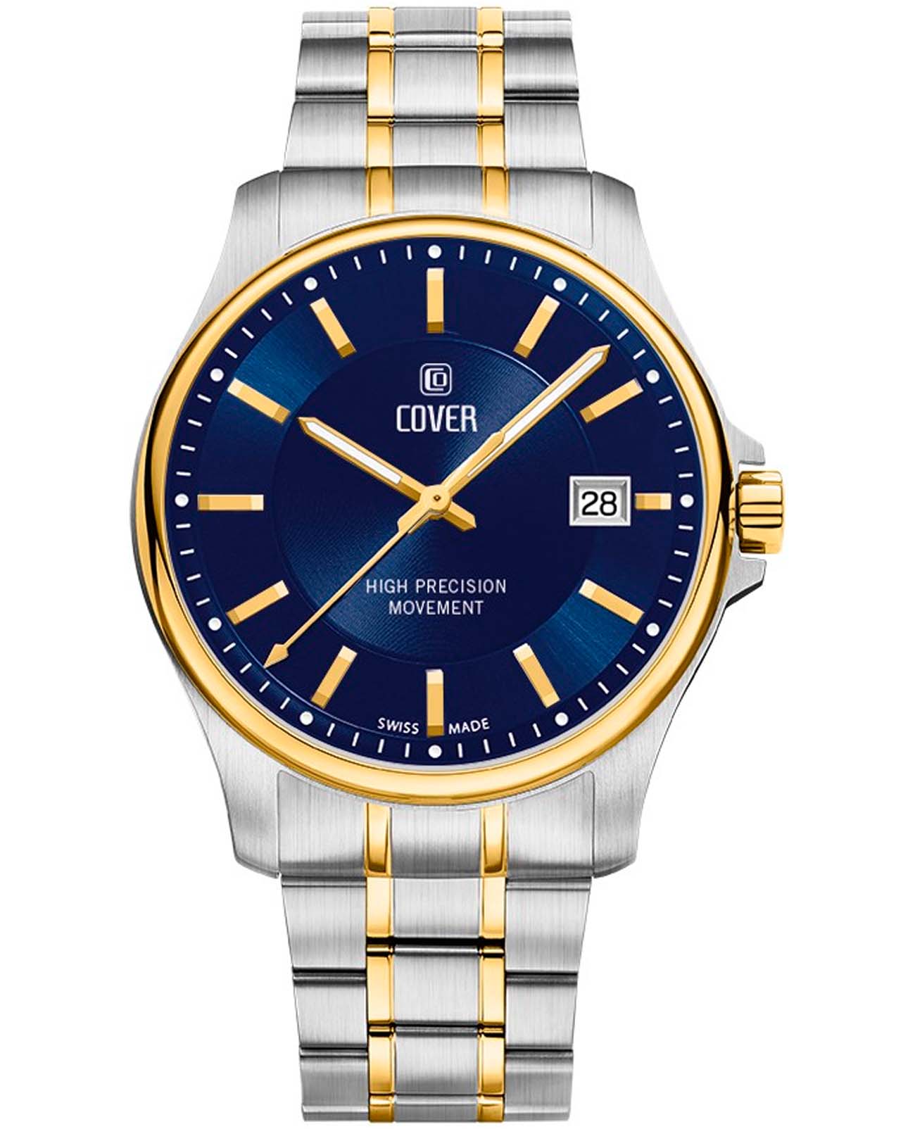 Мужские наручные часы Cover CO200.06 из коллекции Marville сочетают в себе классический дизайн и высокую точность швейцарского производства. Модель обладает круглым корпусом диаметром 39 мм, изготовленным из нержавеющей стали с PVD-покрытиемPVDУльтратонкое покрытие наносится в технике вакуумного напыления, сочетает в себе нитрид титана особой прочности со слоем золота или оксида хрома. Несёт в себе декоративную или защитную функцию., что придает изделию благородный внешний вид. Синий циферблат с апертурой даты на «3 часах» оснащен стрелками для часов, минут и секунд. Для защиты используется сапфировое стеклоСапфировое стеклоПрочный и надёжный материал из кристалла сапфира синтетического происхождения, характеризующийся особой твёрдостью и устойчивостью к царапинам и повреждениям. с антибликовым покрытиемАнтибликовое покрытиеСлой оксида металла в 0,13-0,3 микрон, благодаря которому стекло часов не бликует и не отражает свет. Антибликовое покрытие уменьшает отражение света в 10 раз, обеспечивая отличную читаемость показателей циферблата., обеспечивающее прочную защиту от царапин и превосходную читаемость времени даже при ярком свете. Часы работают на высокоточном кварцевом механизме, гарантирующем исключительную точность хода с погрешностью около 20 секунд в месяц. Браслет выполнен из нержавеющей стали с частичным PVD-покрытиемPVDУльтратонкое покрытие наносится в технике вакуумного напыления, сочетает в себе нитрид титана особой прочности со слоем золота или оксида хрома. Несёт в себе декоративную или защитную функцию. и оснащен раскладной застежкойРаскладная застёжкаТакой тип застёжки используется только на браслетах из металла. Она никогда не раскрывается полностью, происходит разделение на 2 и более частей. Раскладывающая застёжка снизит вероятность потери часов к минимуму., обеспечивающей комфортное ношение и безопасность. Водонепроницаемость достигает 10 атмосфер (100 метров), что позволяет использовать их во время плавания и других водных видов спорта, однако не рекомендуется для глубоководного дайвинга. Эти швейцарские часы станут идеальным дополнением как классического, так и современного образа мужчины, ценящего качество и стиль.