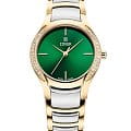 Женские наручные часы Sandara CO203.04 сочетают в себе элегантный дизайн и надежность современных технологий. Модель обладает круглым корпусом диаметром 28 мм, изготовленным из нержавеющей стали, что обеспечивает высокую устойчивость к внешним воздействиям. БезельБезельВнешний ободок, закрепляющий стекло. В спортивных часах так называется поворотное кольцо с делениями на циферблате, выполняет роль таймера – замеряет отрезки времени на шкале. Неподвижный безель – элемент декора. Однонаправленно вращающийся безель на дайверских часах позволяет фиксировать моменты погружения и выныривания на поверхность. с PVD-покрытиемPVDУльтратонкое покрытие наносится в технике вакуумного напыления, сочетает в себе нитрид титана особой прочности со слоем золота или оксида хрома. Несёт в себе декоративную или защитную функцию.. Браслет выполнен из нержавеющей стали с PVD-покрытиемPVDУльтратонкое покрытие наносится в технике вакуумного напыления, сочетает в себе нитрид титана особой прочности со слоем золота или оксида хрома. Несёт в себе декоративную или защитную функцию. и застежкой-бабочкойЗастёжка "бабочка"Такой вид застёжки дополняется предохранителями, помогающими избежать случайного раскрытия браслета. Обладают изящным исполнением. , которая отличается удобством использования и подходит для запястий любого размера благодаря своей посадке. Циферблат декорирован кристаллами, которые придают часам особый шик и неповторимый вид. Для защиты используется сапфировое стеклоСапфировое стеклоПрочный и надёжный материал из кристалла сапфира синтетического происхождения, характеризующийся особой твёрдостью и устойчивостью к царапинам и повреждениям., обеспечивающее прочную защиту от царапин. Часы работают на кварцевом механизме, что гарантирует точное время без необходимости подзаводки. Водонепроницаемость часов составляет 5 атмосфер, что позволяет использовать их в повседневной жизни, однако не рекомендуется для плавания или водных видов спорта.
