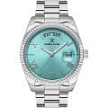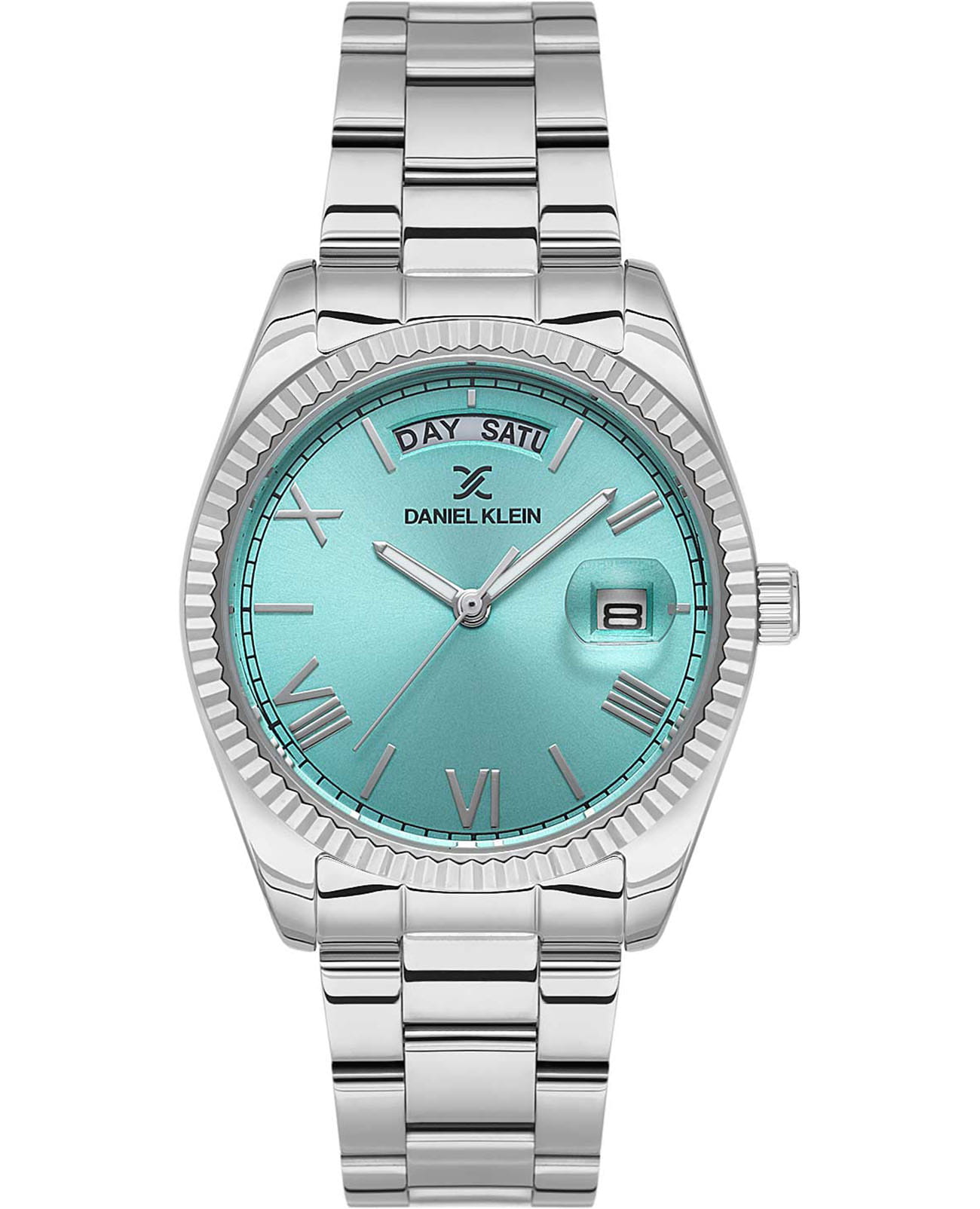 Женские кварцевые часы Daniel Klein — это идеальный повседневный аксессуар для стильной девушки. Корпус диаметром 35 мм выполнен из нержавеющей стали. БезельБезельВнешний ободок, закрепляющий стекло. В спортивных часах так называется поворотное кольцо с делениями на циферблате, выполняет роль таймера – замеряет отрезки времени на шкале. Неподвижный безель – элемент декора. Однонаправленно вращающийся безель на дайверских часах позволяет фиксировать моменты погружения и выныривания на поверхность. рифлёный. Циферблат голубого цвета выполнен по технологии Sunray («солнечные лучи») и оформлен штрихами, римскими цифрами и стрелками. Окошко дня недели расположено в положении 12 часов, окошко даты — в положении 3 часов и оснащено увеличительным стеклом (Cyclops). Стрелки с люминесцентным покрытиемЛюминесцентное покрытиеПозволяет считывать показания времени в темноте. Производители наносят на стрелки, часовые индексы, безель или поверхность циферблата светонакопительный состав, дающий холодное свечение., обеспечивающим хорошую читаемость в темноте. Циферблат защищён минеральным стекломМинеральное стеклоМинеральное стекло представляет собой искусственно выращенный минерал кварца. Такое стекло отличается особой устойчивостью к повреждениям и царапинам. Уступает по некоторым качествам сапфировому стеклу.. Часы оснащены стальным браслетом на раскладной застёжкеРаскладная застёжкаТакой тип застёжки используется только на браслетах из металла. Она никогда не раскрывается полностью, происходит разделение на 2 и более частей. Раскладывающая застёжка снизит вероятность потери часов к минимуму.. Водонепроницаемость 30 м позволяет использовать часы в повседневных условиях. Идеальный выбор для тех, кто ценит турецкое качество и элегантный дизайн.