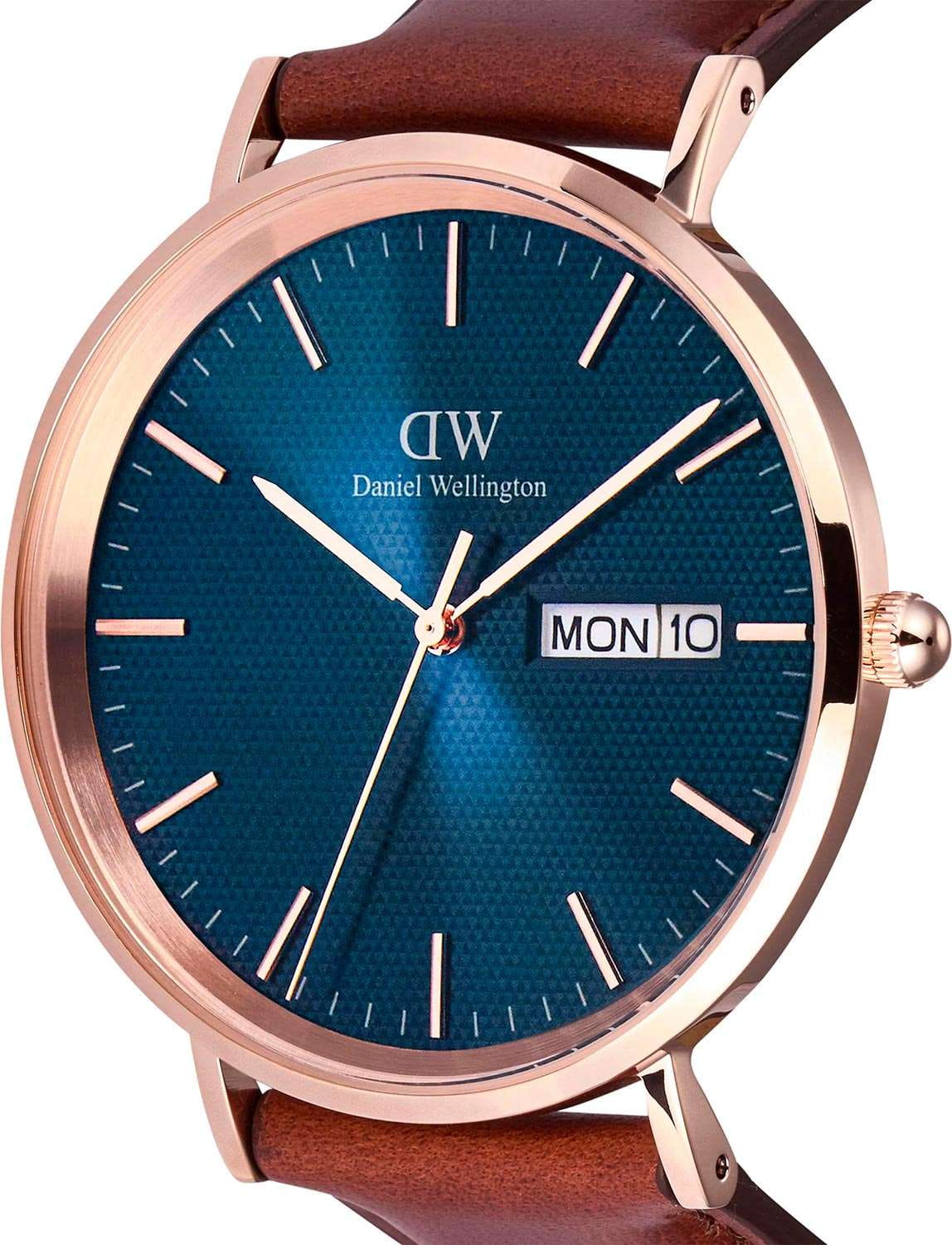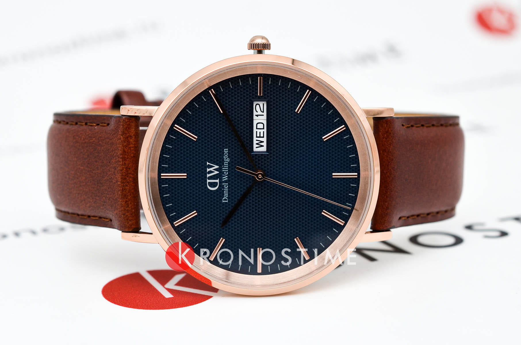 Daniel Wellington — минималистичные мужские часы, сочетающие современную элегантность и скандинавскую строгость. Круглый корпус диаметром 40 мм выполнен из нержавеющей стали с PVD-покрытиемPVDУльтратонкое покрытие наносится в технике вакуумного напыления, сочетает в себе нитрид титана особой прочности со слоем золота или оксида хрома. Несёт в себе декоративную или защитную функцию. с полированной поверхностью, акцентируя чистоту линий.