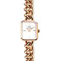 Daniel Wellington Jolie Chain DW00100835 — изящные женские часы в фирменном стиле бренда с акцентом на минимализм и украшение в виде массивного браслета-цепочки. Прямоугольный корпус аккуратного размера подчёркивает современный силуэт, а браслет с широкими звеньями создаёт эффект ювелирного аксессуара.Минеральное стеклоМинеральное стеклоМинеральное стекло представляет собой искусственно выращенный минерал кварца. Такое стекло отличается особой устойчивостью к повреждениям и царапинам. Уступает по некоторым качествам сапфировому стеклу. устойчивое к мелким механическим повреждениям. Циферблат оформлен лаконично: тонкие метки и стрелки обеспечивают лёгкость восприятия времени, оставляя пространство для чистой эстетики. Корпус и браслет покрыты PVD-покрытиемPVDУльтратонкое покрытие наносится в технике вакуумного напыления, сочетает в себе нитрид титана особой прочности со слоем золота или оксида хрома. Несёт в себе декоративную или защитную функцию., что гарантирует стойкость к царапинам и сохранение блеска. Модель работает на точном кварцевом механизме, не требующем ежедневного завода, а надёжная застёжка обеспечивает комфортное ношение. Daniel Wellington Jolie Chain — это часы и стильное украшение одновременно, идеально подходящее для акцента в повседневном и вечернем образе.
