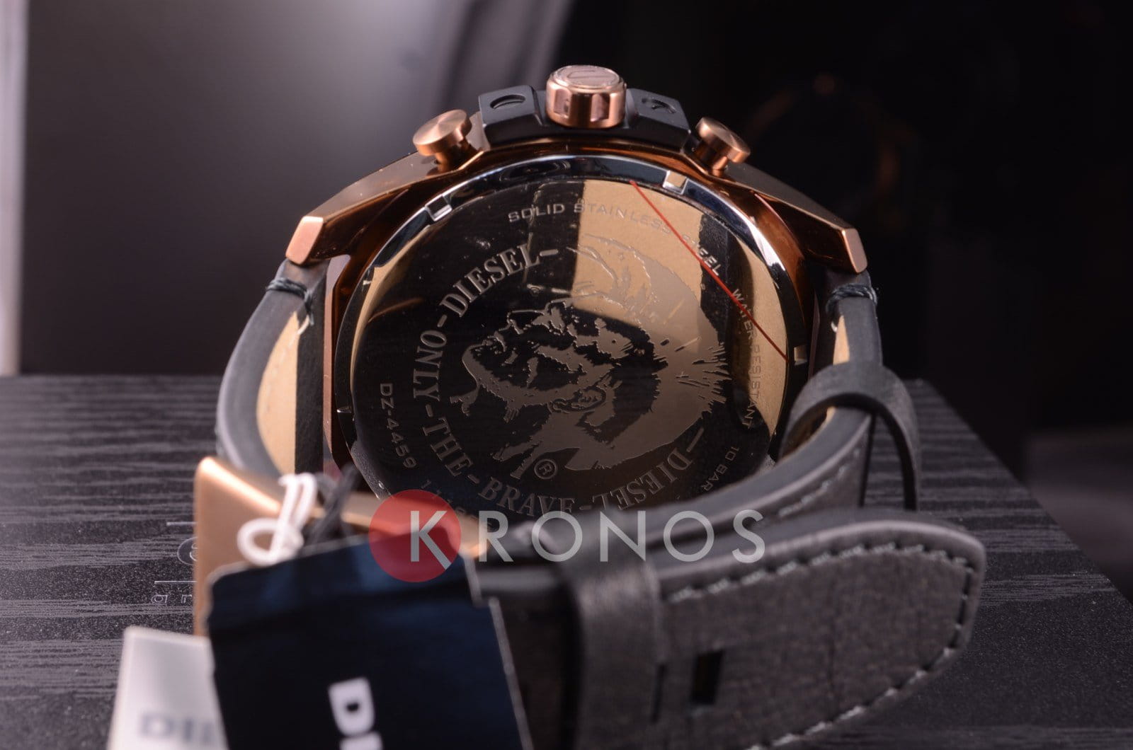 Мужские часы Diesel DZ4459 из коллекции Mega Chief Chronograph представляют собой спортивный хронографХронографФункция позволяет измерять отрезки времени с особой точностью: часы, минуты, секунды. Верным признаком хронографа является наличие на циферблате 3 дополнительных окошек-счётчиков. для дополнения повседневного образа.