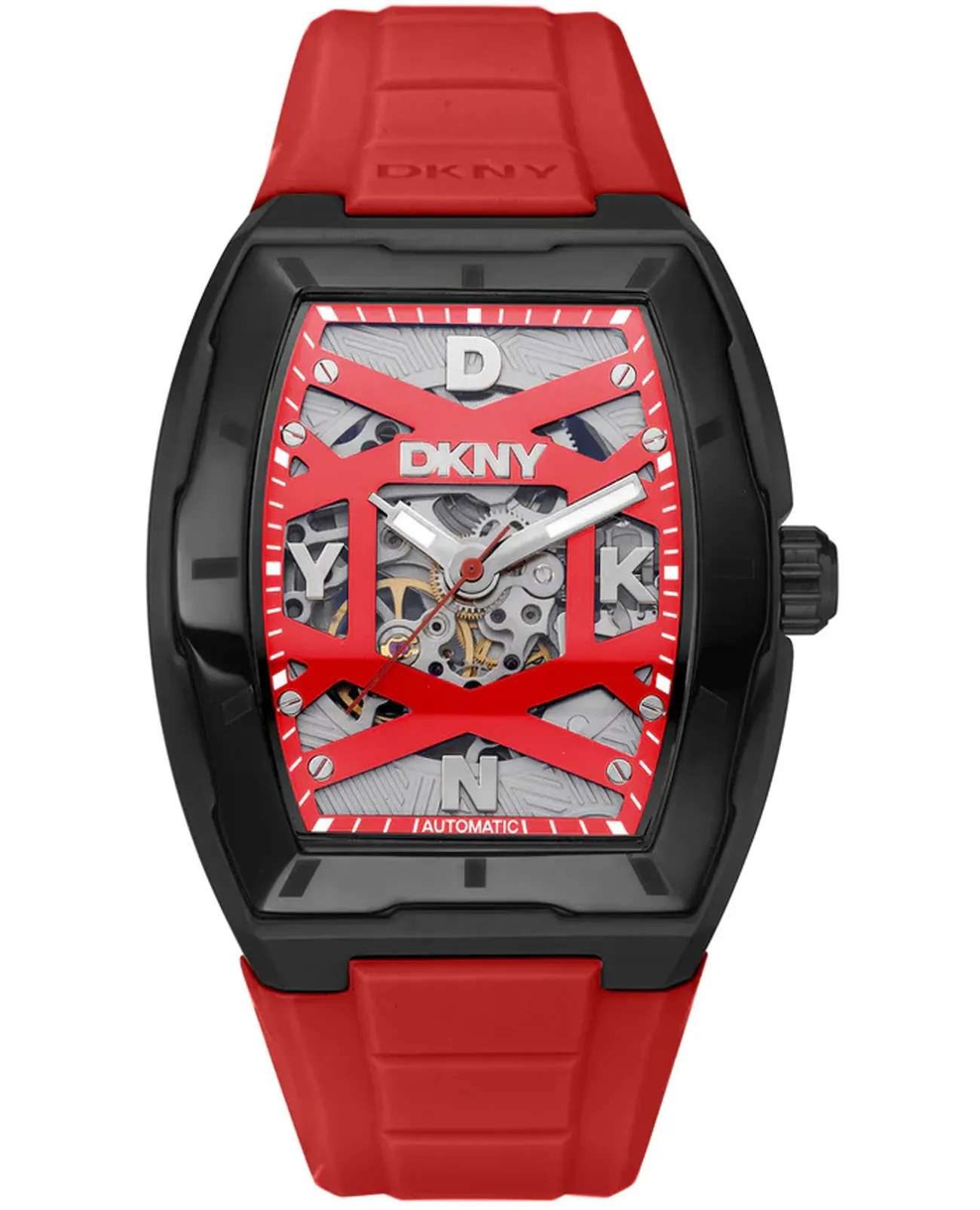 DKNY Urban Automatic DK1G048P0065 — это мужские часы в стиле urban-luxury, сочетающие в себе брутальный дизайн, надежность механического механизма и современную эстетику. Модель выделяется бочкообразным корпусом из нержавеющей стали диаметром 51 мм с IP-покрытиемIP-покрытиеМетод ионного напыления. Демонстрирует повышенную устойчивость к истиранию, окислению и химическим веществам. Под воздействием высокого давления и температуры около 1500°C молекулы металла надёжно соединяются с частицами корпуса часов. и минеральным стекломМинеральное стеклоМинеральное стекло представляет собой искусственно выращенный минерал кварца. Такое стекло отличается особой устойчивостью к повреждениям и царапинам. Уступает по некоторым качествам сапфировому стеклу., которое обеспечивает защиту от царапин. Красный циферблат с люминесцентным покрытиемЛюминесцентное покрытиеПозволяет считывать показания времени в темноте. Производители наносят на стрелки, часовые индексы, безель или поверхность циферблата светонакопительный состав, дающий холодное свечение. для четкой видимости.