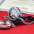 Мужские механические часы с ручным подзаводом Epos из коллекции Oeuvre d'art — это настоящее произведение часового искусства. Корпус диаметром 45 мм и толщиной 13 мм выполнен из нержавеющей стали 316L. Циферблат изумрудно-зелёного цвета частично скелетонизирован, с открытой центральной частью, что позволяет наблюдать за работой механизма. Циферблат защищён сапфировым стекломСапфировое стеклоПрочный и надёжный материал из кристалла сапфира синтетического происхождения, характеризующийся особой твёрдостью и устойчивостью к царапинам и повреждениям.. Малая секундная стрелка вынесена на отдельный циферблат. Механизм — швейцарский калибр ETA Unitas 6498 с ручным подзаводом, модифицированный и декорированный вручную: мосты скелетонизированы, украшены гравировкой и жемчужным зернением. Прозрачная задняя крышка позволяет наблюдать за работой механизма. Заводная головка — винтовая, формы «луковица». Часы оснащены кожаным ремешком чёрного цвета с тиснением под аллигатора и застёжкой «бабочка» с кнопкамиЗастёжка "бабочка"Такой вид застёжки дополняется предохранителями, помогающими избежать случайного раскрытия браслета. Обладают изящным исполнением. . Модель выпущена ограниченной серией — 2015 экземпляров. Водонепроницаемость 50 м позволяет использовать часы в повседневных условиях. Гарантия — 24 месяца. Уникальный выбор для ценителя ручного мастерства и эксклюзивного дизайна.