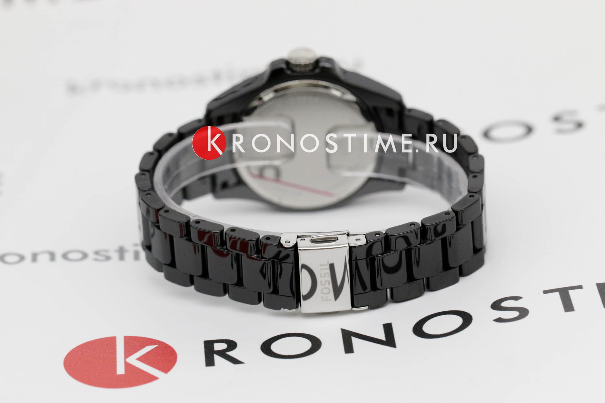 Женские наручные часы с кристаллами Fossil FB-01 CE1108, кварцевый механизм с высокой точностью. Класс водозащиты: 100 метров, позволит плавать, нырять и заниматься другими водными видами спорта. Стрелки с люминесцентным покрытиемЛюминесцентное покрытиеПозволяет считывать показания времени в темноте. Производители наносят на стрелки, часовые индексы, безель или поверхность циферблата светонакопительный состав, дающий холодное свечение.. Циферблат украшен кристаллами. Корпус часов изготовлен из стали с IP-покрытиемIP-покрытиеМетод ионного напыления. Демонстрирует повышенную устойчивость к истиранию, окислению и химическим веществам. Под воздействием высокого давления и температуры около 1500°C молекулы металла надёжно соединяются с частицами корпуса часов.. Керамический браслет с раскладной застёжкойРаскладная застёжкаТакой тип застёжки используется только на браслетах из металла. Она никогда не раскрывается полностью, происходит разделение на 2 и более частей. Раскладывающая застёжка снизит вероятность потери часов к минимуму..