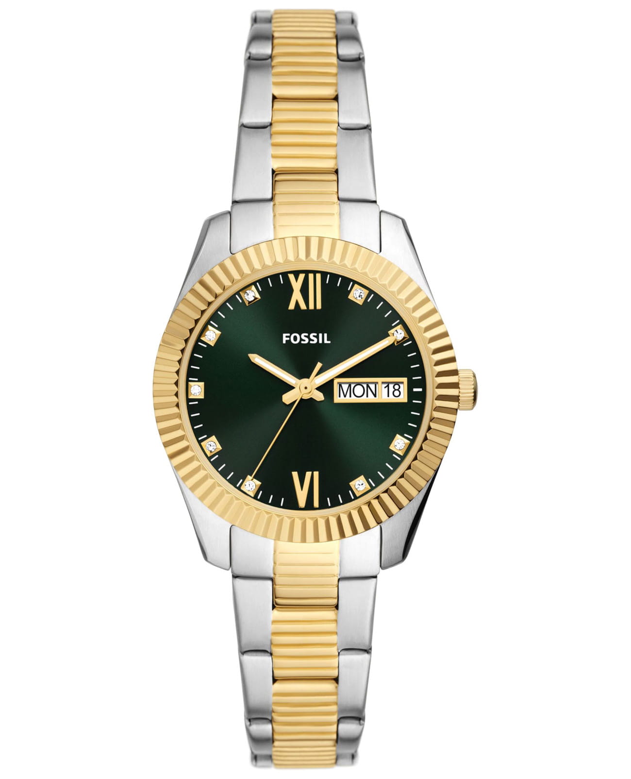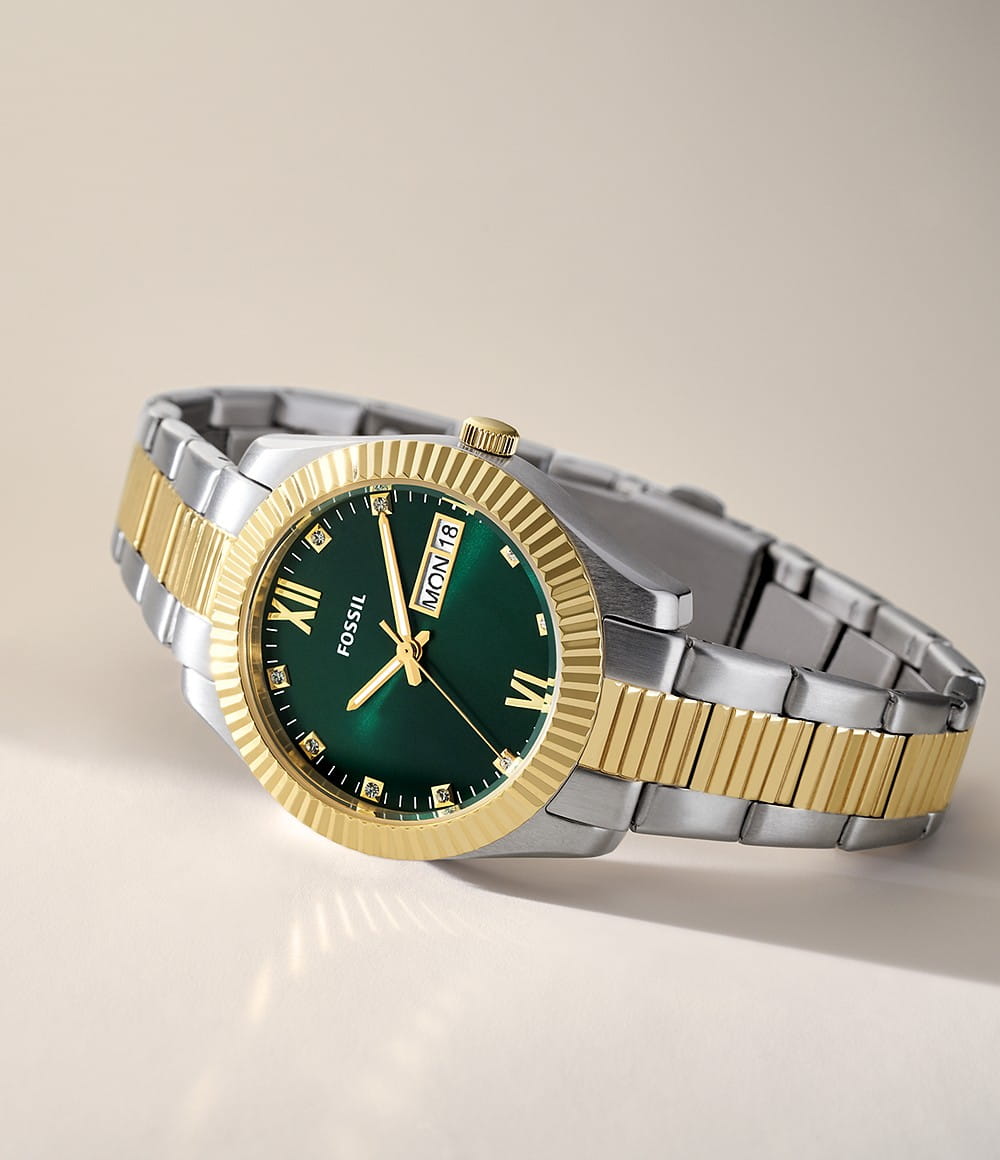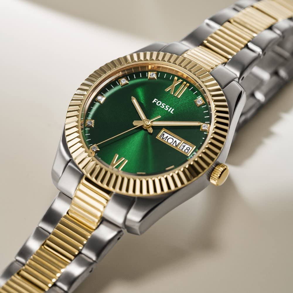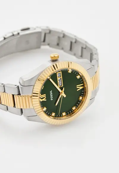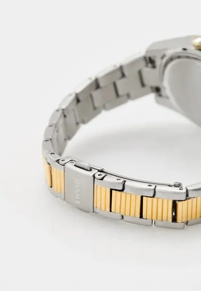 Женские американские кварцевые часы Fossil Scarlette ES5240, кварцевый механизм с высокой точностью. Класс водозащиты: 50 метров, позволит защитить корпус от случайных брызг или капель дождя. Корпус часов изготовлен из стали с IP-покрытиемIP-покрытиеМетод ионного напыления. Демонстрирует повышенную устойчивость к истиранию, окислению и химическим веществам. Под воздействием высокого давления и температуры около 1500°C молекулы металла надёжно соединяются с частицами корпуса часов.. Стальной браслет с раскладной застёжкойРаскладная застёжкаТакой тип застёжки используется только на браслетах из металла. Она никогда не раскрывается полностью, происходит разделение на 2 и более частей. Раскладывающая застёжка снизит вероятность потери часов к минимуму. с IP-покрытиемIP-покрытиеМетод ионного напыления. Демонстрирует повышенную устойчивость к истиранию, окислению и химическим веществам. Под воздействием высокого давления и температуры около 1500°C молекулы металла надёжно соединяются с частицами корпуса часов.. Окошки дня недели и даты находятся в положении 3 часа. Циферблат инкрустирован кристаллами. Стрелки с люминесцентным покрытиемЛюминесцентное покрытиеПозволяет считывать показания времени в темноте. Производители наносят на стрелки, часовые индексы, безель или поверхность циферблата светонакопительный состав, дающий холодное свечение..