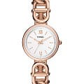 Женские американские часы с минеральным стекломМинеральное стеклоМинеральное стекло представляет собой искусственно выращенный минерал кварца. Такое стекло отличается особой устойчивостью к повреждениям и царапинам. Уступает по некоторым качествам сапфировому стеклу. Fossil Carlie ES5273, кварцевый механизм с высокой точностью. Корпус и браслет часов изготовлены из нержавеющей стали с IP-покрытиемIP-покрытиеМетод ионного напыления. Демонстрирует повышенную устойчивость к истиранию, окислению и химическим веществам. Под воздействием высокого давления и температуры около 1500°C молекулы металла надёжно соединяются с частицами корпуса часов.. Стрелки с люминесцентным покрытиемЛюминесцентное покрытиеПозволяет считывать показания времени в темноте. Производители наносят на стрелки, часовые индексы, безель или поверхность циферблата светонакопительный состав, дающий холодное свечение.. Рифленая заводная головка с защитой. Класс водозащиты: 50 метров, позволит защитить корпус от случайных брызг или капель дождя. Стальной браслет в виде звеньев на ювелирной застежке.