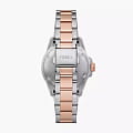 Женские американские часы с минеральным стекломМинеральное стеклоМинеральное стекло представляет собой искусственно выращенный минерал кварца. Такое стекло отличается особой устойчивостью к повреждениям и царапинам. Уступает по некоторым качествам сапфировому стеклу. Fossil Raquel ES5348, кварцевый механизм с высокой точностью. Корпус часов изготовлены из нержавеющей стали . Класс водозащиты: 50 метров, позволит защитить корпус от случайных брызг или капель дождя. Стальной браслет с IP-покрытиемIP-покрытиеМетод ионного напыления. Демонстрирует повышенную устойчивость к истиранию, окислению и химическим веществам. Под воздействием высокого давления и температуры около 1500°C молекулы металла надёжно соединяются с частицами корпуса часов. на раскладной застёжкеРаскладная застёжкаТакой тип застёжки используется только на браслетах из металла. Она никогда не раскрывается полностью, происходит разделение на 2 и более частей. Раскладывающая застёжка снизит вероятность потери часов к минимуму.. БезельБезельВнешний ободок, закрепляющий стекло. В спортивных часах так называется поворотное кольцо с делениями на циферблате, выполняет роль таймера – замеряет отрезки времени на шкале. Неподвижный безель – элемент декора. Однонаправленно вращающийся безель на дайверских часах позволяет фиксировать моменты погружения и выныривания на поверхность. с IP-покрытиемIP-покрытиеМетод ионного напыления. Демонстрирует повышенную устойчивость к истиранию, окислению и химическим веществам. Под воздействием высокого давления и температуры около 1500°C молекулы металла надёжно соединяются с частицами корпуса часов.. Стрелки с люминесцентным покрытиемЛюминесцентное покрытиеПозволяет считывать показания времени в темноте. Производители наносят на стрелки, часовые индексы, безель или поверхность циферблата светонакопительный состав, дающий холодное свечение.. Циферблат украшен кристаллами.