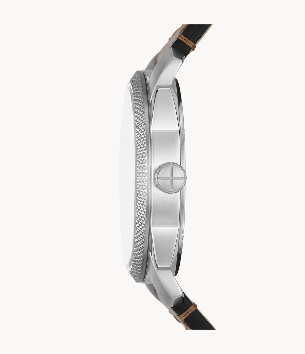Мужские наручные часы Fossil Machine FS5920. Кварцевый механизм с высокой точностью. Минеральное стеклоМинеральное стеклоМинеральное стекло представляет собой искусственно выращенный минерал кварца. Такое стекло отличается особой устойчивостью к повреждениям и царапинам. Уступает по некоторым качествам сапфировому стеклу. устойчивое к появлению царапин, обладающее высокой прозрачностью. Стрелки с люминесцентным покрытиемЛюминесцентное покрытиеПозволяет считывать показания времени в темноте. Производители наносят на стрелки, часовые индексы, безель или поверхность циферблата светонакопительный состав, дающий холодное свечение. Класс водозащиты: 50 метров, позволит защитить корпус от случайных брызг или капель дождя. Корпус часов изготовлен из стали серебристого цвета. Рифленая заводная головка. На циферблате расположены метки в виде штрихов и окошко даты и дня недели в положении 3 часа. Кожаный ремешок с классической застежкой.