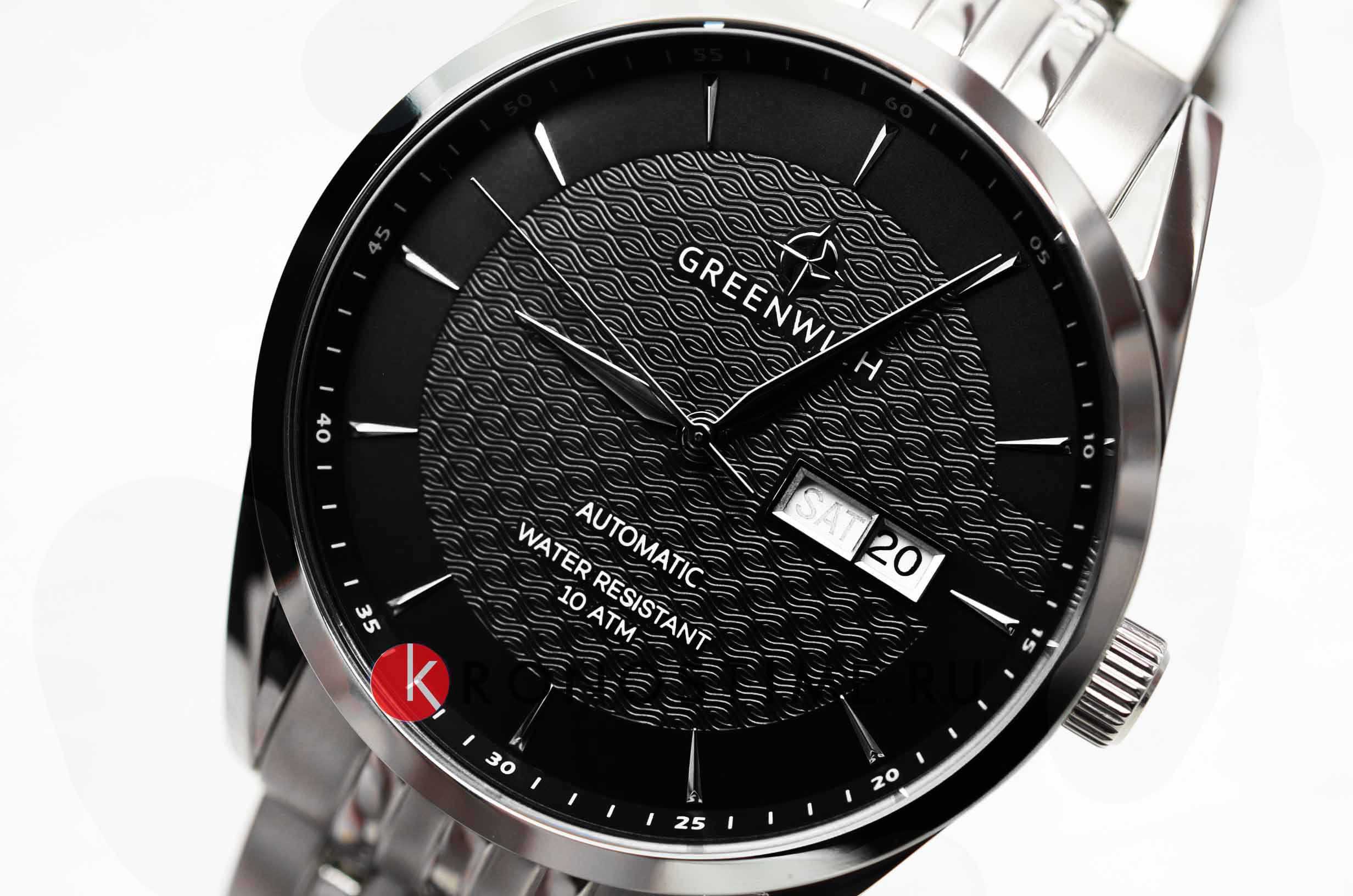 Мужские часы с минеральным стекломМинеральное стеклоМинеральное стекло представляет собой искусственно выращенный минерал кварца. Такое стекло отличается особой устойчивостью к повреждениям и царапинам. Уступает по некоторым качествам сапфировому стеклу. Greenwich Good Luck Classic GW 074.10.31, представляют собой классический вариант для повседневной носки. В центральной части циферблата — отличительная черта моделей этой серии: гильоше, объемные линии которого напоминают волны. Обратите внимание на форму пластины, где крепятся накладные риски: она сделана в форме латинской буквы G, первой буквы в названии бренда. Часы характеризуются традиционными формами, лаконичным исполнением, что делает модель элегантным дополнением к деловому костюму. Сквозь прозрачную заднюю крышку вы увидите детали механизма TMI с декорированным ротором: на нем выгравировано изображение символа английских моряков — парусника. Браслет и застежка-клипса выполнены из гипоаллергенной нержавеющей стали. Дизайн, актуальный для любого современного образа, и надежность используемых материалов делают автоматические часы Greenwich удобным и стильным аксессуаром на каждый день.