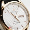 Мужские часы с минеральным стекломМинеральное стеклоМинеральное стекло представляет собой искусственно выращенный минерал кварца. Такое стекло отличается особой устойчивостью к повреждениям и царапинам. Уступает по некоторым качествам сапфировому стеклу. Greenwich Good Luck Classic GW 074.41.33, представляют собой классический вариант для повседневной носки. В центральной части циферблата — отличительная черта моделей этой серии: гильоше, объемные линии которого напоминают волны. Обратите внимание на форму пластины, где крепятся накладные риски: она сделана в форме латинской буквы G, первой буквы в названии бренда. Часы характеризуются традиционными формами, лаконичным исполнением, что делает модель элегантным дополнением к деловому костюму. Сквозь прозрачную заднюю крышку вы увидите детали механизма TMI с декорированным ротором: на нем выгравировано изображение символа английских моряков — парусника. Ремешок на стандартной застёжке выполнен из натуральной кожи с прошивкой в тон. Дизайн, актуальный для любого современного образа, и надежность используемых материалов делают автоматические часы Greenwich удобным и стильным аксессуаром на каждый день. Окошко даты и дня недели находится в положении 3 часа. Класс водозащиты: 100 метров, позволит плавать, нырять и заниматься другими водными видами спорта. Корпус с PVD-покрытиемPVDУльтратонкое покрытие наносится в технике вакуумного напыления, сочетает в себе нитрид титана особой прочности со слоем золота или оксида хрома. Несёт в себе декоративную или защитную функцию..