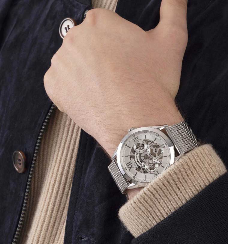 Мужские наручные часы Guess Dress Steel GW0368G1, с минеральным стекломМинеральное стеклоМинеральное стекло представляет собой искусственно выращенный минерал кварца. Такое стекло отличается особой устойчивостью к повреждениям и царапинам. Уступает по некоторым качествам сапфировому стеклу., кварцевый механизм с высокой точностью. Класс водозащиты: 30 метров, позволит защитить корпус от случайных брызг или капель дождя. Корпус часов изготовлен из стали. Браслет с раскладной застёжкойРаскладная застёжкаТакой тип застёжки используется только на браслетах из металла. Она никогда не раскрывается полностью, происходит разделение на 2 и более частей. Раскладывающая застёжка снизит вероятность потери часов к минимуму.