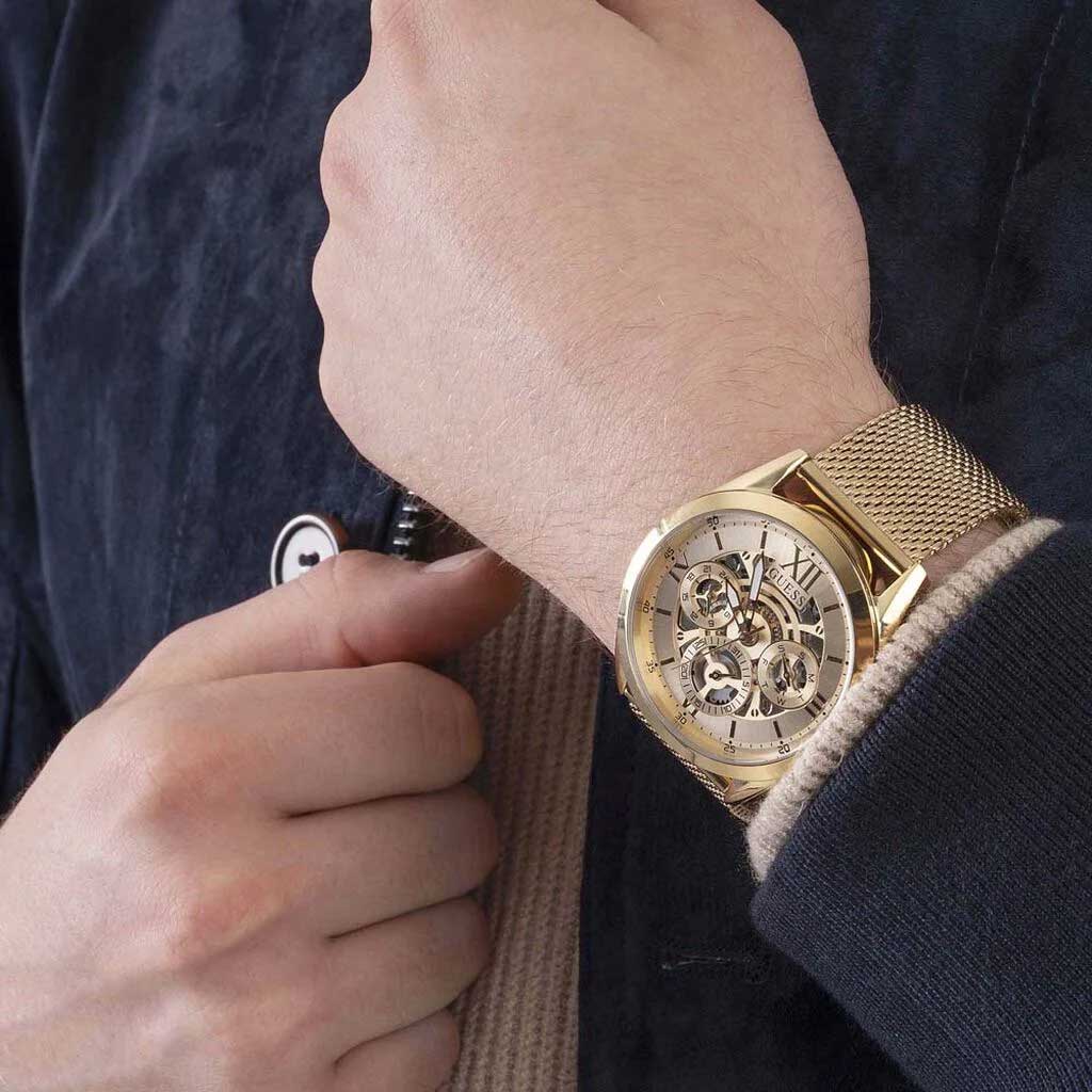 Мужские наручные часы Guess Dress Steel GW0368G2, кварцевый механизм с высокой точностью. Класс водозащиты: 30 метров, позволит защитить корпус от случайных брызг или капель дождя. Корпус часов изготовлен из стали, золотистого цвета.