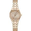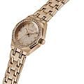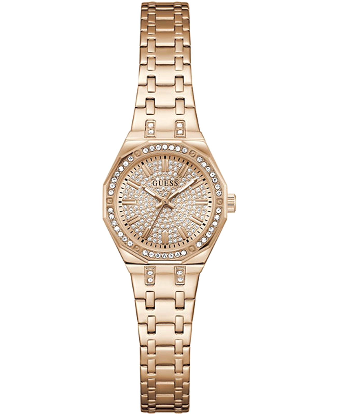 Элегантные женские наручные часы Guess GW0931L4 сочетают в себе стиль и функциональность. Эти часы оснащены точным кварцевым механизмом, что гарантирует надежность и долговечность. Корпус часов выполнен из прочной нержавеющей стали с PVD-покрытиемPVDУльтратонкое покрытие наносится в технике вакуумного напыления, сочетает в себе нитрид титана особой прочности со слоем золота или оксида хрома. Несёт в себе декоративную или защитную функцию. цвета розового золота, диаметром 25 мм, а безельБезельВнешний ободок, закрепляющий стекло. В спортивных часах так называется поворотное кольцо с делениями на циферблате, выполняет роль таймера – замеряет отрезки времени на шкале. Неподвижный безель – элемент декора. Однонаправленно вращающийся безель на дайверских часах позволяет фиксировать моменты погружения и выныривания на поверхность. украшен изысканными кристаллами, придающими им роскошный вид. Циферблат добавляет изделию утонченности и особого шарма. Часы оснащены стальным браслетом с PVD-покрытиемPVDУльтратонкое покрытие наносится в технике вакуумного напыления, сочетает в себе нитрид титана особой прочности со слоем золота или оксида хрома. Несёт в себе декоративную или защитную функцию. на раскладной застёжкеРаскладная застёжкаТакой тип застёжки используется только на браслетах из металла. Она никогда не раскрывается полностью, происходит разделение на 2 и более частей. Раскладывающая застёжка снизит вероятность потери часов к минимуму., которая обеспечивает комфортное прилегание к запястью и надежную фиксацию. Минеральное стеклоМинеральное стеклоМинеральное стекло представляет собой искусственно выращенный минерал кварца. Такое стекло отличается особой устойчивостью к повреждениям и царапинам. Уступает по некоторым качествам сапфировому стеклу. защищает циферблат от царапин и повреждений, сохраняя его безупречный вид. Водозащита 30WR гарантирует защиту от случайных брызг и дождя, что делает эти часы практичным аксессуаром для повседневной жизни. Люминесцентное покрытиеЛюминесцентное покрытиеПозволяет считывать показания времени в темноте. Производители наносят на стрелки, часовые индексы, безель или поверхность циферблата светонакопительный состав, дающий холодное свечение. на стрелках обеспечивает отличную видимость в темноте. Guess – это не просто аксессуар, это заявление о вашем безупречном вкусе и стремлении к совершенству.