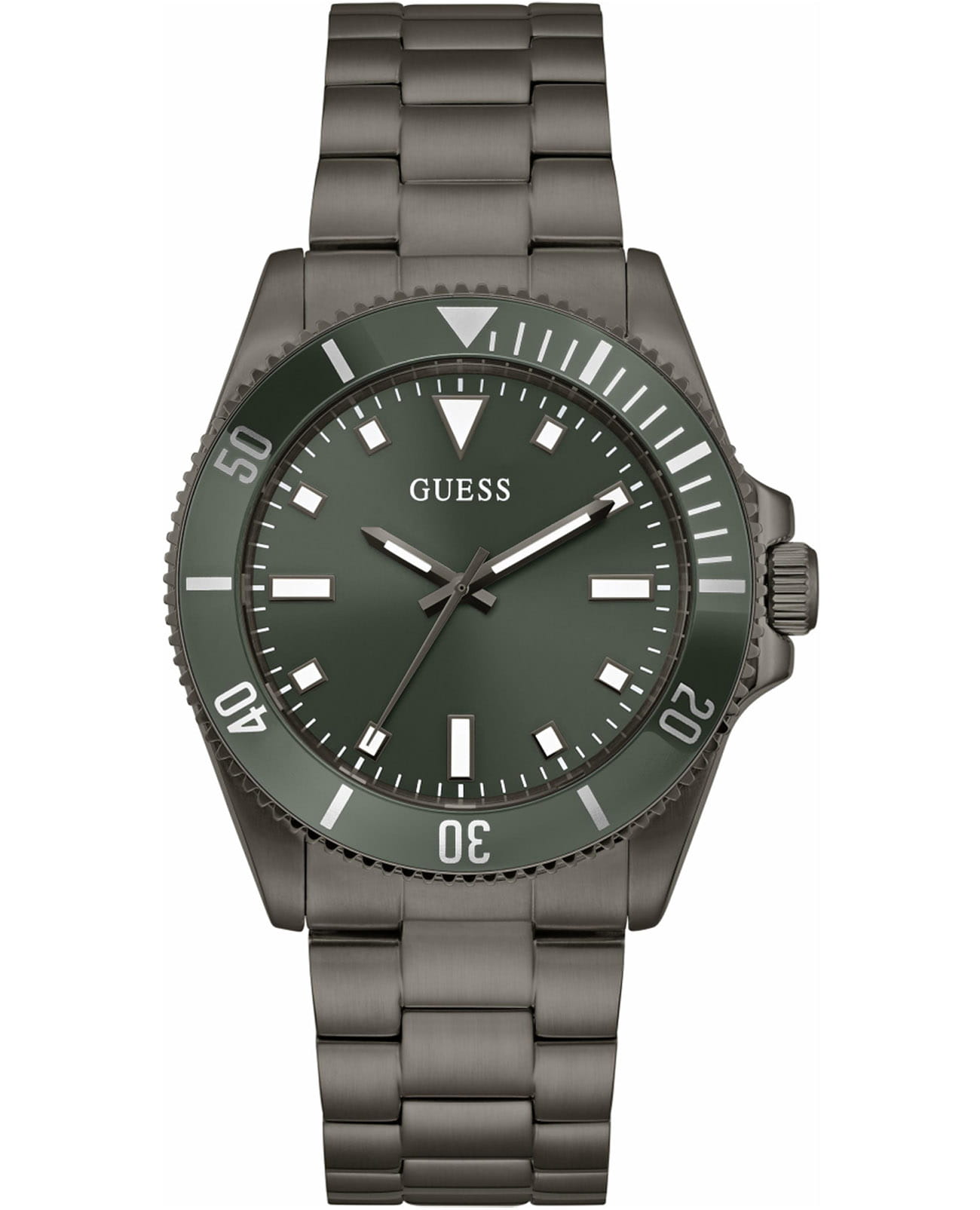Часы Guess Sport Cliff GW0968G3 — это изысканный аксессуар, который добавит вашему современному образу нотку гламура и элегантности. Часы оснащены надежным кварцевым механизмом, который обеспечивает точность и долговечность. Круглый стальной корпус с IP-покрытиемIP-покрытиеМетод ионного напыления. Демонстрирует повышенную устойчивость к истиранию, окислению и химическим веществам. Под воздействием высокого давления и температуры около 1500°C молекулы металла надёжно соединяются с частицами корпуса часов. диаметром 41 мм и с поворотным безелемБезельВнешний ободок, закрепляющий стекло. В спортивных часах так называется поворотное кольцо с делениями на циферблате, выполняет роль таймера – замеряет отрезки времени на шкале. Неподвижный безель – элемент декора. Однонаправленно вращающийся безель на дайверских часах позволяет фиксировать моменты погружения и выныривания на поверхность. придает часам стильный и современный вид. Циферблат создает утонченное и изысканное впечатление. Люминесцентное покрытиеЛюминесцентное покрытиеПозволяет считывать показания времени в темноте. Производители наносят на стрелки, часовые индексы, безель или поверхность циферблата светонакопительный состав, дающий холодное свечение. на часах обеспечивает отличную видимость в темноте. Часы оснащены рифленой заводной головкой для удобного управления.Стальной браслет с IP-покрытиемIP-покрытиеМетод ионного напыления. Демонстрирует повышенную устойчивость к истиранию, окислению и химическим веществам. Под воздействием высокого давления и температуры около 1500°C молекулы металла надёжно соединяются с частицами корпуса часов. на раскладной застёжкеРаскладная застёжкаТакой тип застёжки используется только на браслетах из металла. Она никогда не раскрывается полностью, происходит разделение на 2 и более частей. Раскладывающая застёжка снизит вероятность потери часов к минимуму. добавляет модели элегантности и удобства, подчеркивая вашу индивидуальность и стиль. Водозащита 50WR позволит мыть руки или гулять под дождем, не опасаясь того, что в корпус попадет вода, а минеральное стеклоМинеральное стеклоМинеральное стекло представляет собой искусственно выращенный минерал кварца. Такое стекло отличается особой устойчивостью к повреждениям и царапинам. Уступает по некоторым качествам сапфировому стеклу. защищает циферблат от царапин. Эта модель станет идеальным аксессуаром для ежедневного использования и особых мероприятий, подчеркивая вашу индивидуальность и стиль.