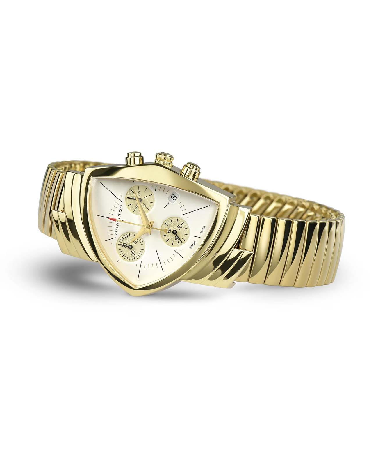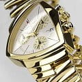 Мужские кварцевые часы Hamilton Ventura Chrono Quartz H24422151 c хронографомХронографФункция позволяет измерять отрезки времени с особой точностью: часы, минуты, секунды. Верным признаком хронографа является наличие на циферблате 3 дополнительных окошек-счётчиков.. Корпус и браслет часов изготовлены из нержавеющей стали с PVD-покрытиемPVDУльтратонкое покрытие наносится в технике вакуумного напыления, сочетает в себе нитрид титана особой прочности со слоем золота или оксида хрома. Несёт в себе декоративную или защитную функцию.. Сапфировое стеклоСапфировое стеклоПрочный и надёжный материал из кристалла сапфира синтетического происхождения, характеризующийся особой твёрдостью и устойчивостью к царапинам и повреждениям. устойчивое к мелким механическим повреждениям. Окошко даты находится в положении 4 часа. Класс водозащиты: 50 метров, позволит защитить корпус от случайных брызг или капель дождя.