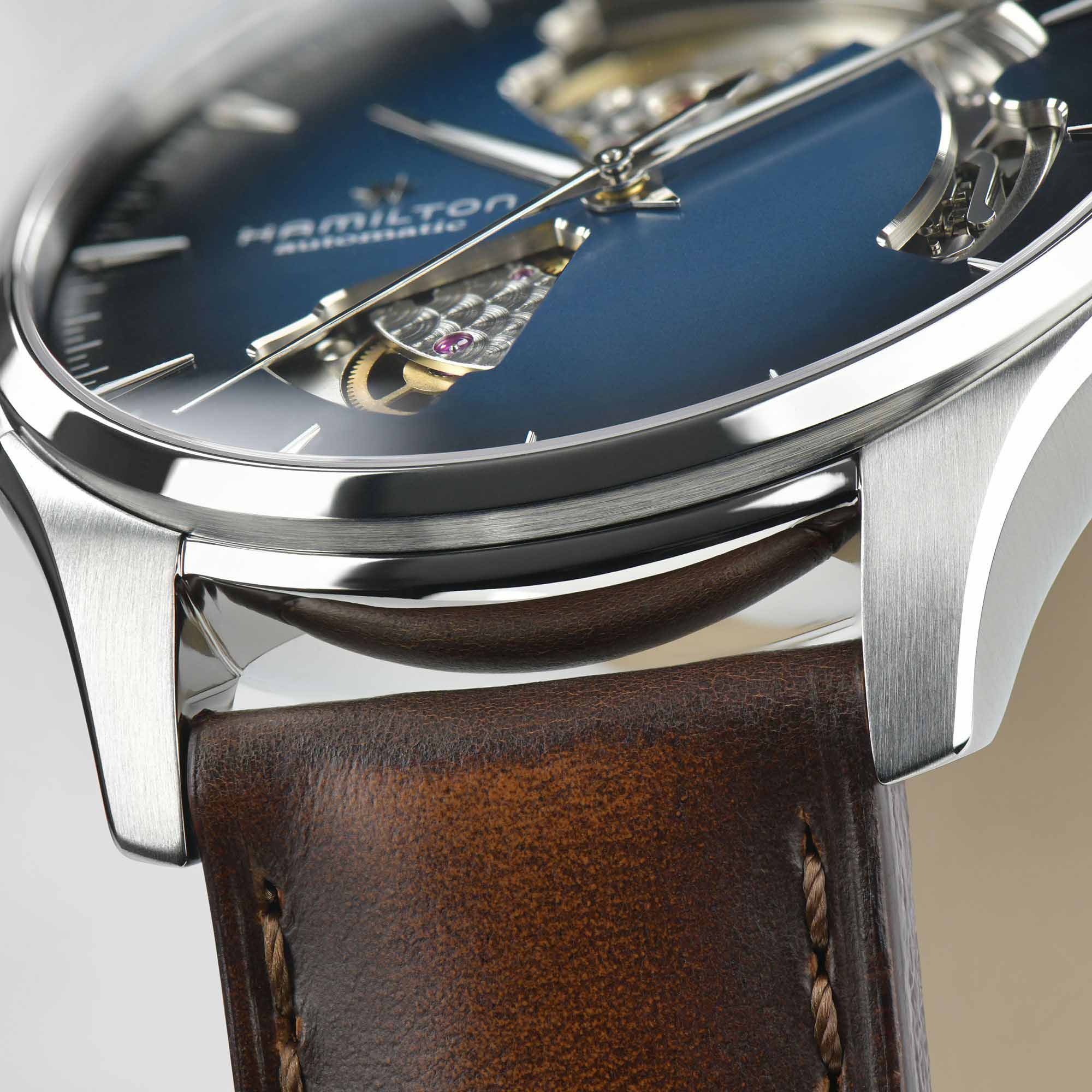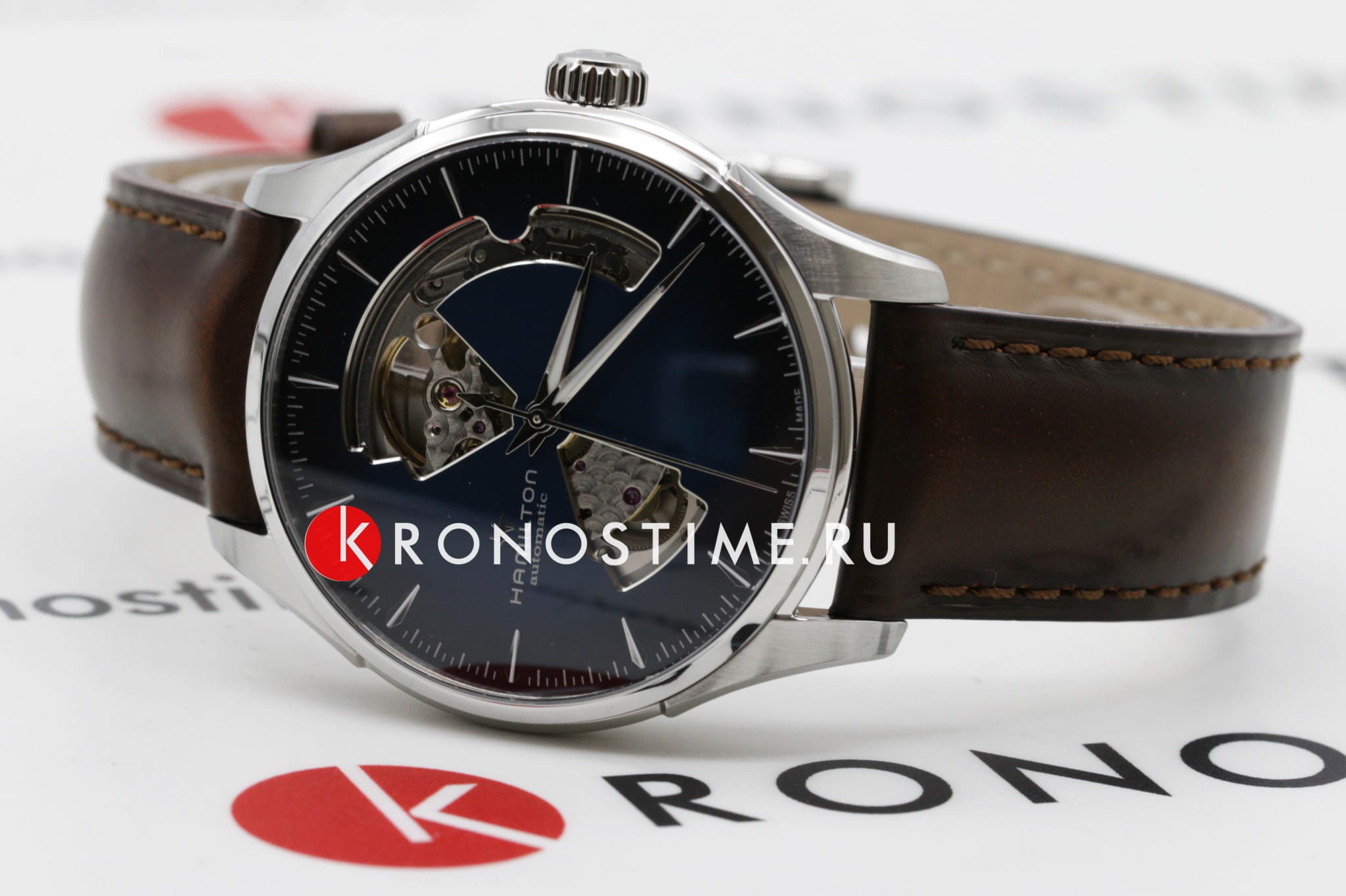 Мужские механические швейцарские часы Hamilton Jazzmaster Open Heart Auto H32675540, автоматический механизм с высокой точностью. Сапфировое стеклоСапфировое стеклоПрочный и надёжный материал из кристалла сапфира синтетического происхождения, характеризующийся особой твёрдостью и устойчивостью к царапинам и повреждениям. устойчивое к появлению царапин, обладающее высокой прозрачностью. Класс водозащиты: 50 метров, позволит защитить корпус от случайных брызг или капель дождя. Корпус часов изготовлен из нержавеющей стали. Стрелки и метки с люминесцентным покрытиемЛюминесцентное покрытиеПозволяет считывать показания времени в темноте. Производители наносят на стрелки, часовые индексы, безель или поверхность циферблата светонакопительный состав, дающий холодное свечение.. Кожаный ремешок.