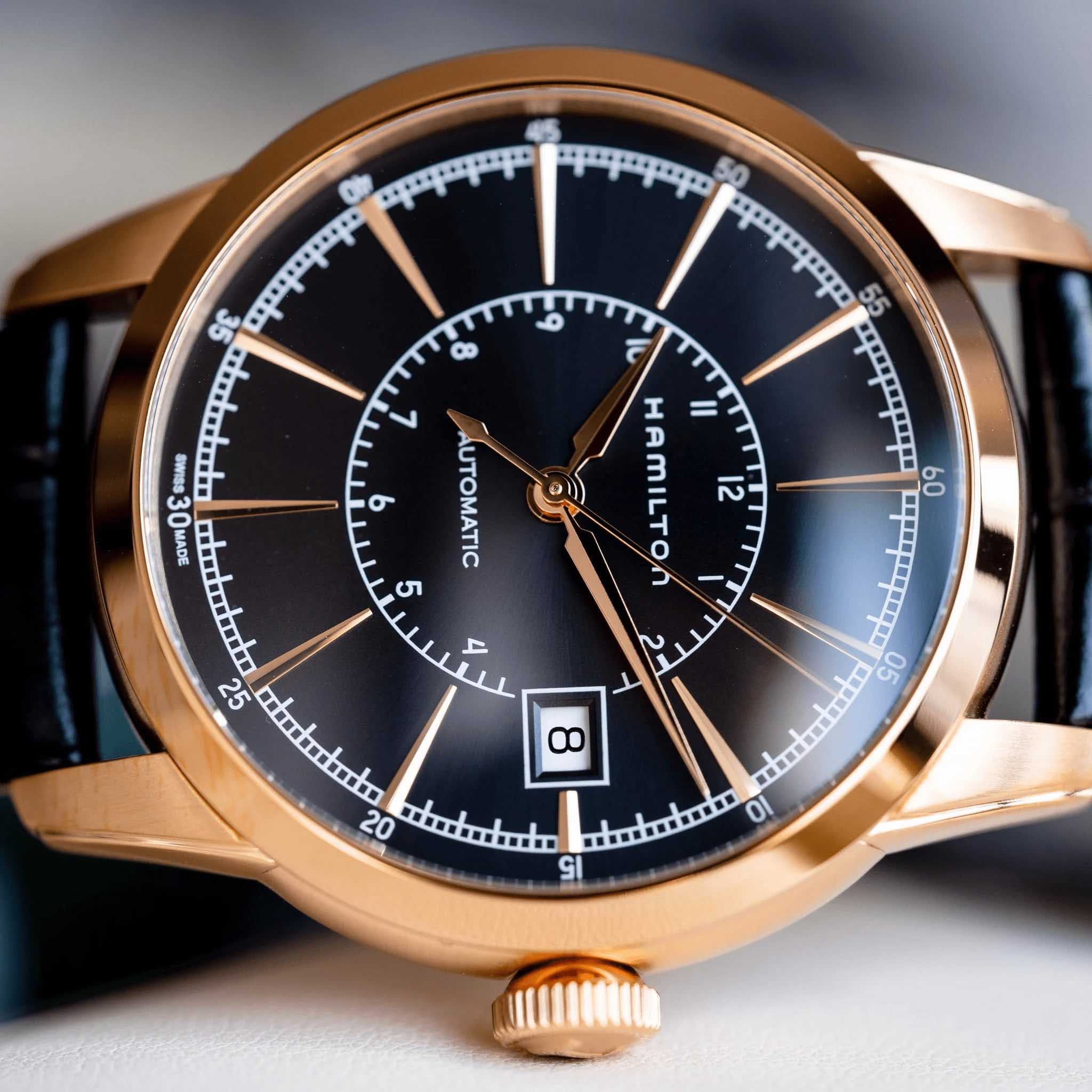 Мужские механические швейцарские часы с прозрачной задней крышкой Hamilton American Classic Railroad Auto H40505731, механический механизм (автоматический калибр) с высокой точностью. Сапфировое стеклоСапфировое стеклоПрочный и надёжный материал из кристалла сапфира синтетического происхождения, характеризующийся особой твёрдостью и устойчивостью к царапинам и повреждениям. устойчивое к появлению царапин, обладающее высокой прозрачностью. Класс водозащиты: 50 метров, позволит защитить корпус от случайных брызг или капель дождя. Корпус часов изготовлен из стали с PVD-покрытиемPVDУльтратонкое покрытие наносится в технике вакуумного напыления, сочетает в себе нитрид титана особой прочности со слоем золота или оксида хрома. Несёт в себе декоративную или защитную функцию.. Кожаный ремешок с раскладной застёжкойРаскладная застёжкаТакой тип застёжки используется только на браслетах из металла. Она никогда не раскрывается полностью, происходит разделение на 2 и более частей. Раскладывающая застёжка снизит вероятность потери часов к минимуму.. Окошко даты находится в положении 3 часа.