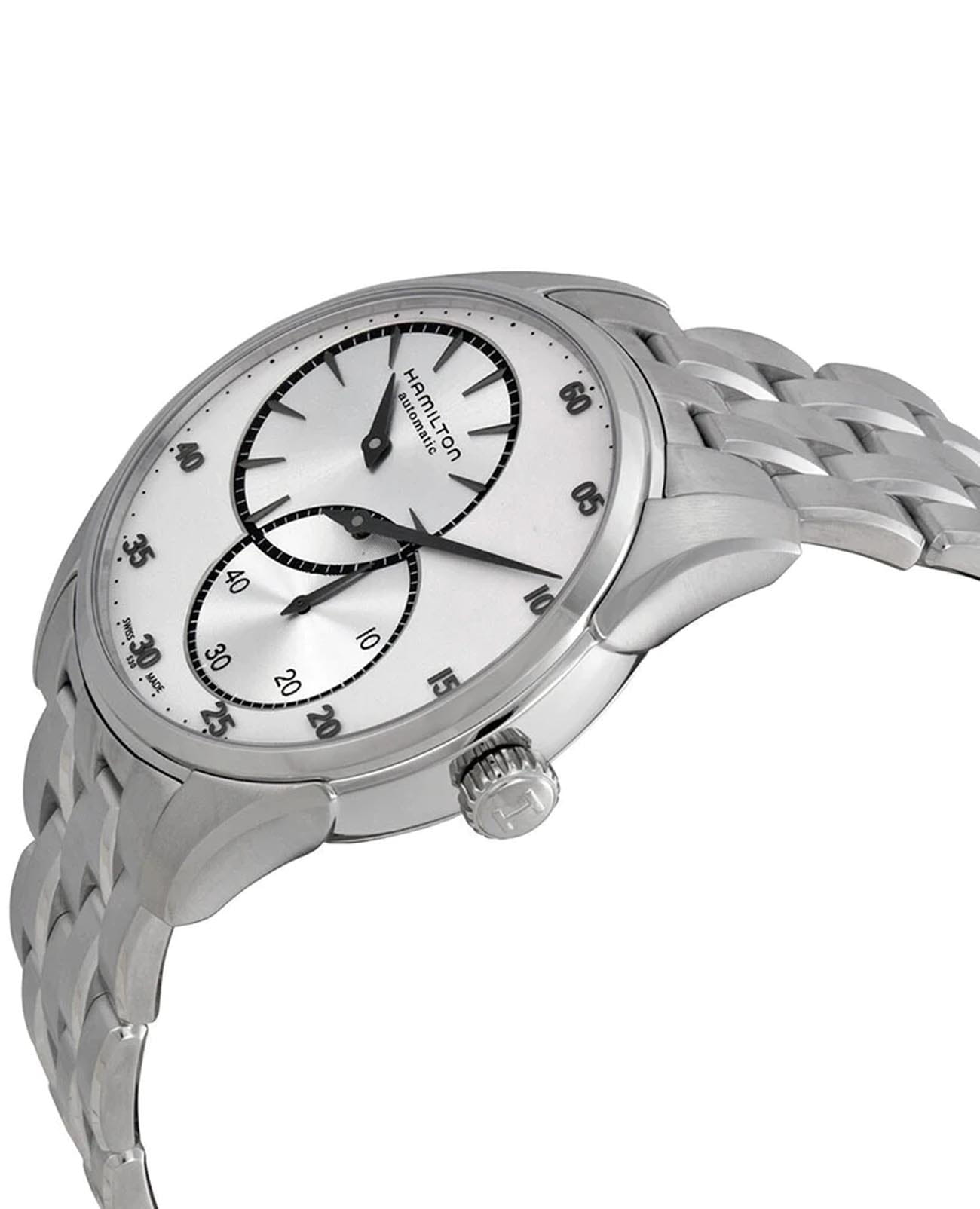 Мужские механические швейцарские часы с автоподзаводом Hamilton Jazzmaster Regulator Auto H42615153. Корпус и браслет часов изготовлены из нержавеющей стали. Стальной браслет на застёжке-бабочке с кнопкамиЗастёжка "бабочка"Такой вид застёжки дополняется предохранителями, помогающими избежать случайного раскрытия браслета. Обладают изящным исполнением. . Сапфировое стеклоСапфировое стеклоПрочный и надёжный материал из кристалла сапфира синтетического происхождения, характеризующийся особой твёрдостью и устойчивостью к царапинам и повреждениям. устойчивое к мелким механическим повреждениям. Класс водозащиты: 50 метров, позволит защитить корпус от случайных брызг или капель дождя.