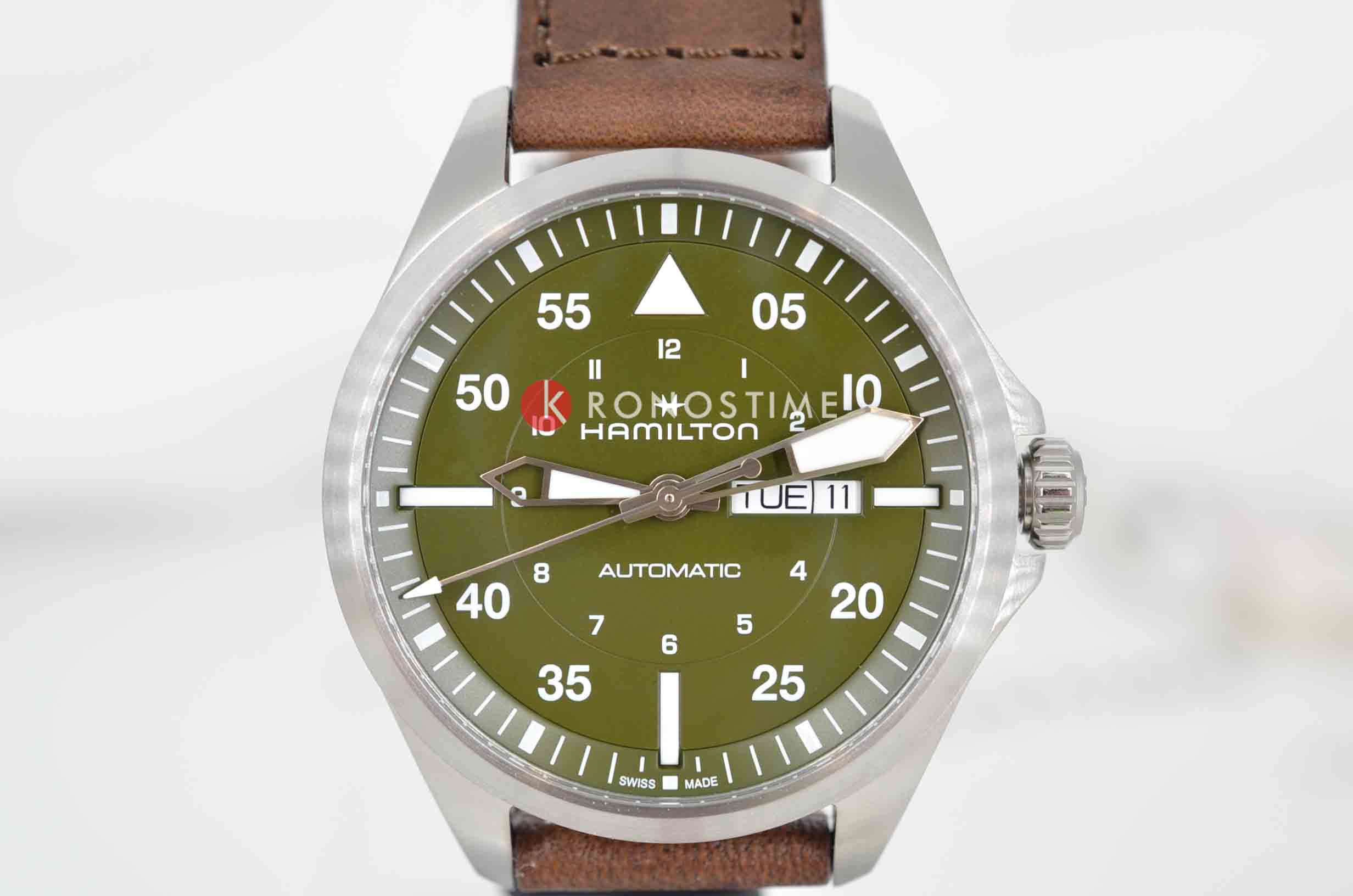 Созданная для настоящих фанатов авиации, модель Khaki Aviation Pilot Day Date пробуждает характерный для коллекции Khaki дух исследований и приключений. Эти часы оснащены автоматическим механизмом H-30 с 80-часовым запасом хода и спиралью баланса из сплава Nivachron™.