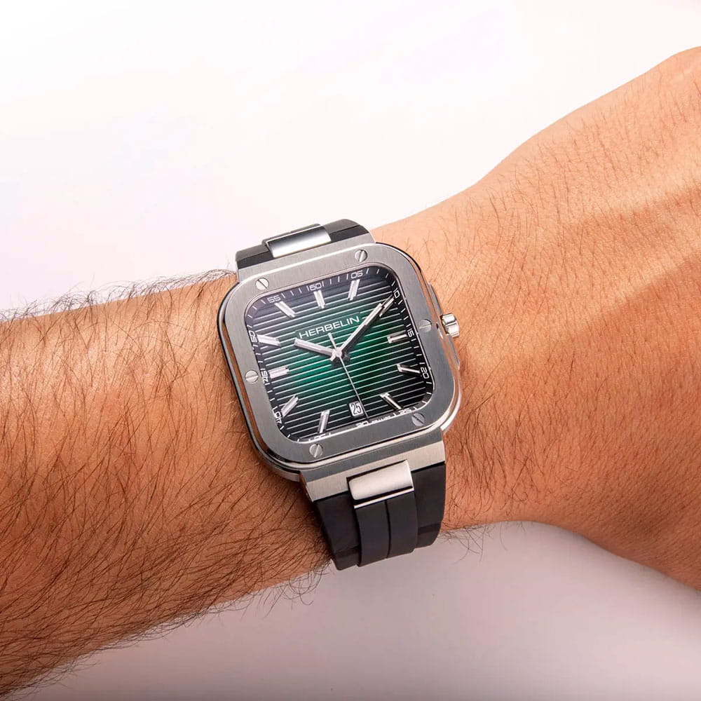 Мужские кварцевые часы Herbelin Cap Camarat 12246A16CA – отражающий идеальное сочетание современного дизайна, надёжности и функциональности. Элегантный облик станет превосходным завершением образа, наделив его индивидуальным характером. Корпус из нержавеющей стали серебристого цвета, размером 39 х 39 мм, идеально сбалансирован и элегантен. Сапфировое стеклоСапфировое стеклоПрочный и надёжный материал из кристалла сапфира синтетического происхождения, характеризующийся особой твёрдостью и устойчивостью к царапинам и повреждениям. защищает циферблат от царапин и устойчивое к механическим повреждениям. БезельБезельВнешний ободок, закрепляющий стекло. В спортивных часах так называется поворотное кольцо с делениями на циферблате, выполняет роль таймера – замеряет отрезки времени на шкале. Неподвижный безель – элемент декора. Однонаправленно вращающийся безель на дайверских часах позволяет фиксировать моменты погружения и выныривания на поверхность. украшен винтами, заводная головка с защитой. Окошко даты находится в положении 6 часов. Стрелки и метки с люминесцентным покрытиемЛюминесцентное покрытиеПозволяет считывать показания времени в темноте. Производители наносят на стрелки, часовые индексы, безель или поверхность циферблата светонакопительный состав, дающий холодное свечение.. Каучуковый ремешок на стандартной застежке обеспечивает комфортное ношение. Водозащита 100 метров позволит плавать, нырять и заниматься другими водными видами спорта. Эта модель – отличный выбор для тех, кто ищет сочетание стиля, качества и функциональности. Часы станут не только полезным аксессуаром, но и выразительным элементом вашего имиджа.