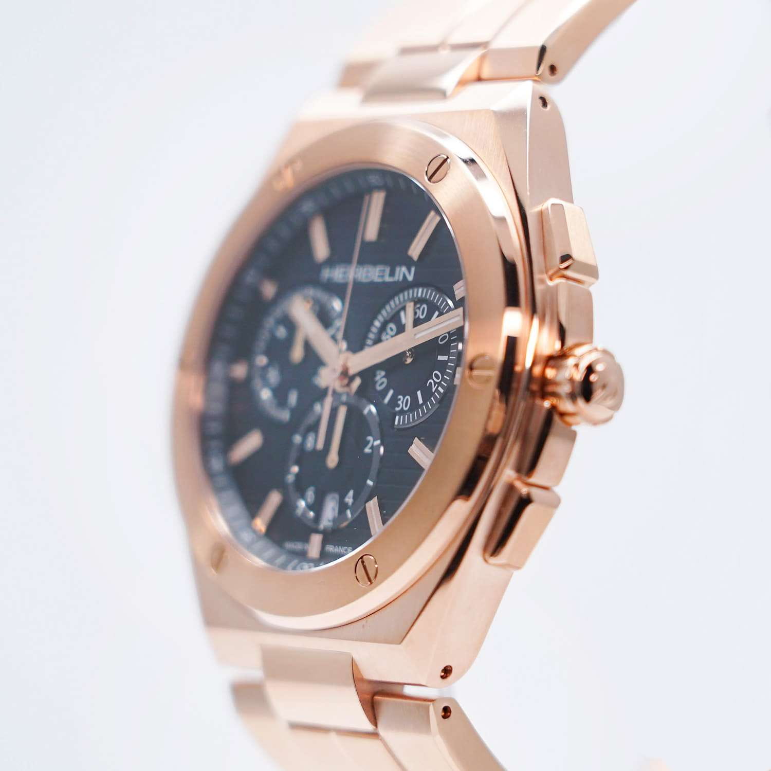 Мужские кварцевые наручные часы-хронографХронографФункция позволяет измерять отрезки времени с особой точностью: часы, минуты, секунды. Верным признаком хронографа является наличие на циферблате 3 дополнительных окошек-счётчиков. Herbelin Cap Camarat 37645BPR14 – отражающий идеальное сочетание современного дизайна, надёжности и функциональности. Элегантный облик станет превосходным завершением образа, наделив его индивидуальным характером. Корпус из нержавеющей стали с PVD-покрытиемPVDУльтратонкое покрытие наносится в технике вакуумного напыления, сочетает в себе нитрид титана особой прочности со слоем золота или оксида хрома. Несёт в себе декоративную или защитную функцию. цвета розового золота, диаметром 42 мм, идеально сбалансирован и элегантен. Сапфировое стеклоСапфировое стеклоПрочный и надёжный материал из кристалла сапфира синтетического происхождения, характеризующийся особой твёрдостью и устойчивостью к царапинам и повреждениям. защищает циферблат от царапин и устойчивое к механическим повреждениям. БезельБезельВнешний ободок, закрепляющий стекло. В спортивных часах так называется поворотное кольцо с делениями на циферблате, выполняет роль таймера – замеряет отрезки времени на шкале. Неподвижный безель – элемент декора. Однонаправленно вращающийся безель на дайверских часах позволяет фиксировать моменты погружения и выныривания на поверхность. украшен винтами, заводная головка с защитой. Окошко даты находится в положении 6 часов. Стрелки и метки с люминесцентным покрытиемЛюминесцентное покрытиеПозволяет считывать показания времени в темноте. Производители наносят на стрелки, часовые индексы, безель или поверхность циферблата светонакопительный состав, дающий холодное свечение.. Стальной браслет с PVD-покрытиемPVDУльтратонкое покрытие наносится в технике вакуумного напыления, сочетает в себе нитрид титана особой прочности со слоем золота или оксида хрома. Несёт в себе декоративную или защитную функцию. на застёжке-бабочке с кнопкамиЗастёжка "бабочка"Такой вид застёжки дополняется предохранителями, помогающими избежать случайного раскрытия браслета. Обладают изящным исполнением. обеспечивает комфортное ношение. Водозащита 100 метров позволит плавать, нырять и заниматься другими водными видами спорта. Эта модель – отличный выбор для тех, кто ищет сочетание стиля, качества и функциональности. Часы станут не только полезным аксессуаром, но и выразительным элементом вашего имиджа.