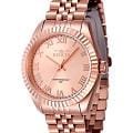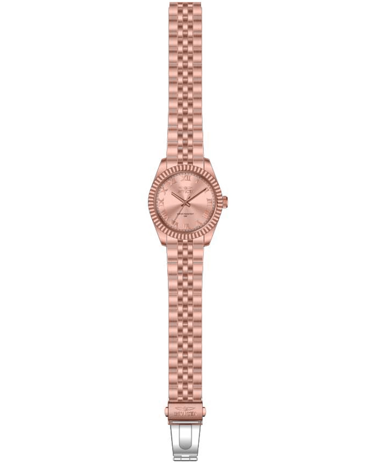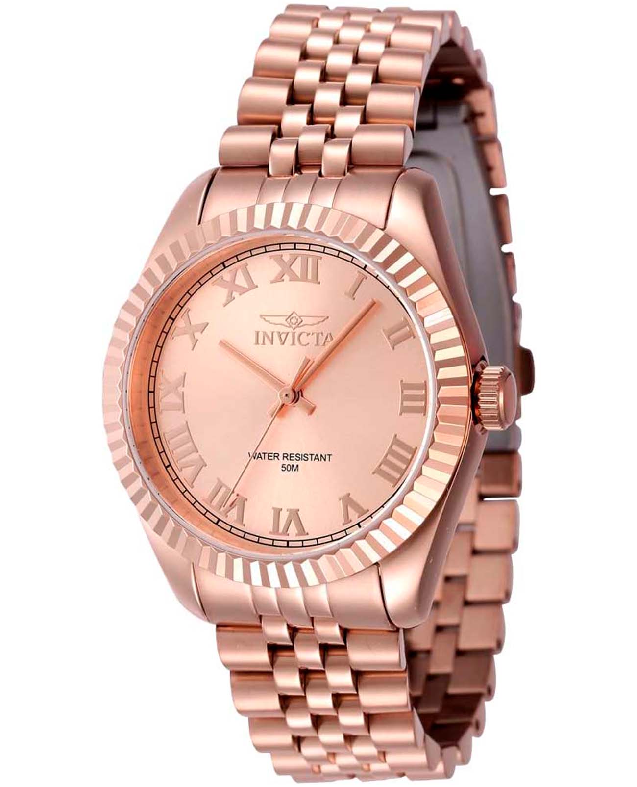 Женские наручные часы Invicta Specialty IN47419 сочетают в себе элегантный дизайн и надежность современных технологий . Модель обладает круглым корпусом, выполненным из нержавеющей стали с IP-покрытиемIP-покрытиеМетод ионного напыления. Демонстрирует повышенную устойчивость к истиранию, окислению и химическим веществам. Под воздействием высокого давления и температуры около 1500°C молекулы металла надёжно соединяются с частицами корпуса часов., что обеспечивает высокую устойчивость к внешним воздействиям. БезельБезельВнешний ободок, закрепляющий стекло. В спортивных часах так называется поворотное кольцо с делениями на циферблате, выполняет роль таймера – замеряет отрезки времени на шкале. Неподвижный безель – элемент декора. Однонаправленно вращающийся безель на дайверских часах позволяет фиксировать моменты погружения и выныривания на поверхность. украшен рифленой отделкой с алмазной гранью, придающей часам дополнительную роскошь . Браслет также изготовлен из нержавеющей стали с IP-покрытиемIP-покрытиеМетод ионного напыления. Демонстрирует повышенную устойчивость к истиранию, окислению и химическим веществам. Под воздействием высокого давления и температуры около 1500°C молекулы металла надёжно соединяются с частицами корпуса часов. и оснащен раскладывающейся застежкойРаскладной замокДанный вариант застежки используется только на часах с металлическим браслетом. Отличительная особенность такого крепления в том, что длина браслета становится универсальной и вы можете самостоятельно отрегулировать нужный вам размер – застежка просто двигается по браслету часов., гарантирующей комфортное ношение и безопасность . Золотистый циферблат дополнен серебристыми стрелками и римскими цифрами в качестве часовых меток, а также минутными делениями по внешнему краю . Для защиты используется минеральное стеклоМинеральное стеклоМинеральное стекло представляет собой искусственно выращенный минерал кварца. Такое стекло отличается особой устойчивостью к повреждениям и царапинам. Уступает по некоторым качествам сапфировому стеклу., которое обеспечивает прочность и устойчивость к царапинам . Часы оснащены кварцевым механизмом калибра Seiko PC21, что гарантирует точность хода без необходимости подзаводки . Водонепроницаемость модели достигает 50 метров (5 атмосфер), что позволяет использовать их в повседневной жизни, включая контакт с водой, например, при мытье рук или дожде . Сочетание классического дизайна и функциональности делает эту модель универсальным аксессуаром для различных случаев жизни.