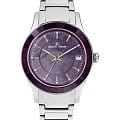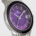Фиолетовый циферблат покрыт перламутром и оснащен окошком даты на трех часах, которое выделено накладной рамкой. В каждой, отполированной до зеркального блеска, риске отражается сияние кристаллов Swarovski— на циферблате их ровно двенадцать. Эти кристаллы, помимо декоративной функции, помогают определять время.