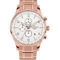 Мужские часы Jacques Lemans London 1-1844ZP представляют собой стильный хронографХронографФункция позволяет измерять отрезки времени с особой точностью: часы, минуты, секунды. Верным признаком хронографа является наличие на циферблате 3 дополнительных окошек-счётчиков., отражающий идеальное сочетание современного дизайна, надёжности и функциональности. Элегантный облик позволяют носить часы как со строгой рубашкой, так и с повседневными джинсами. Корпус из нержавеющей стали с PVD-покрытиемPVDУльтратонкое покрытие наносится в технике вакуумного напыления, сочетает в себе нитрид титана особой прочности со слоем золота или оксида хрома. Несёт в себе декоративную или защитную функцию. цвета розового золота, диаметром 44 мм идеально сбалансирован и элегантен. Ударопрочное минеральное стеклоМинеральное стеклоМинеральное стекло представляет собой искусственно выращенный минерал кварца. Такое стекло отличается особой устойчивостью к повреждениям и царапинам. Уступает по некоторым качествам сапфировому стеклу. Crystex защищает циферблат от царапин. Стальной браслет на раскладной застёжке с фиксаторомРаскладная застёжкаТакой тип застёжки используется только на браслетах из металла. Она никогда не раскрывается полностью, происходит разделение на 2 и более частей. Раскладывающая застёжка снизит вероятность потери часов к минимуму. обеспечивает комфортное ношение. ТахиметрТахиметрРазмеченная шкала, располагается на ободке или безеле часов. Тахиметр позволяет рассчитать скорость на определённом участке пути, расстояние измеряется в километрах или милях. по внешнему краю. Водозащита 100 метров позволит плавать, нырять и заниматься другими водными видами спорта. Стрелки с люминесцентным покрытиемЛюминесцентное покрытиеПозволяет считывать показания времени в темноте. Производители наносят на стрелки, часовые индексы, безель или поверхность циферблата светонакопительный состав, дающий холодное свечение. позволяют легко определять время даже в темноте. Окошко даты находится в положении между 4 и 5 часов. Это аксессуар для мужчины, который ценит классический стиль и функциональность.